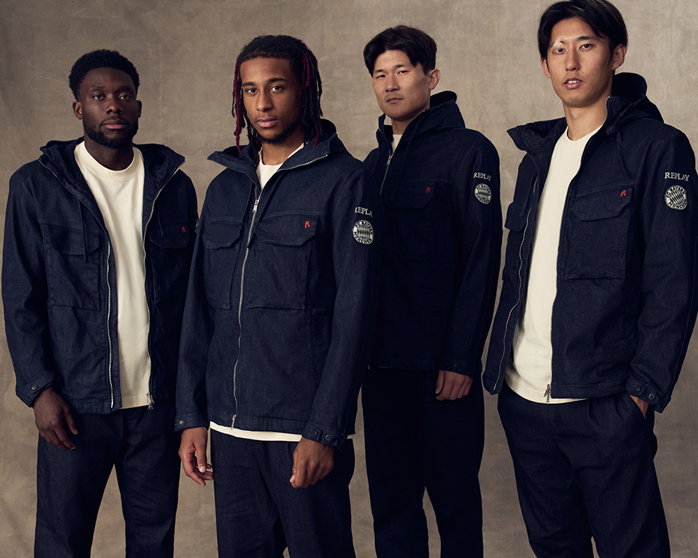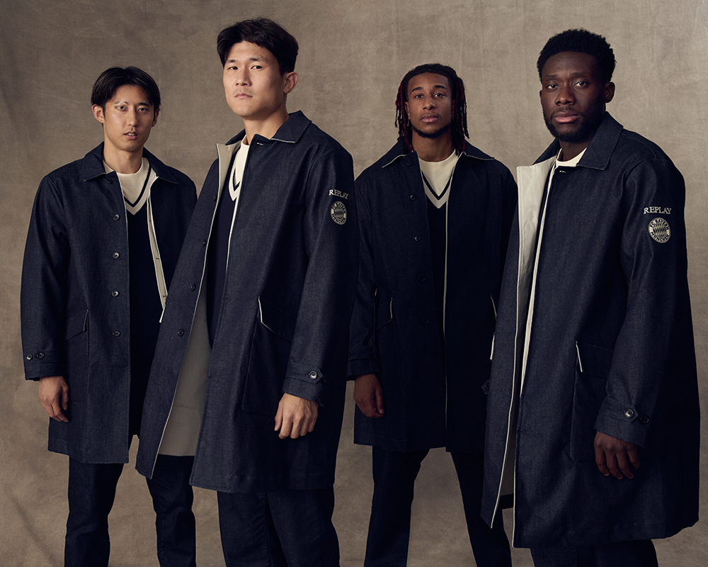 REPLAY and FC Bayern Munich present a new collection drop that reimagines football aesthetics: minimalist, modern, and confident. Clean lines, dark tones, and premium materials meet subtle club details – inspired by team spirit. The looks function like a unified attitude: sporty without the tracksuit, elegant without stiffness. Whether knitwear, denim, or outerwear – the pieces translate the players‘ off-field look into contemporary menswear with attitude.