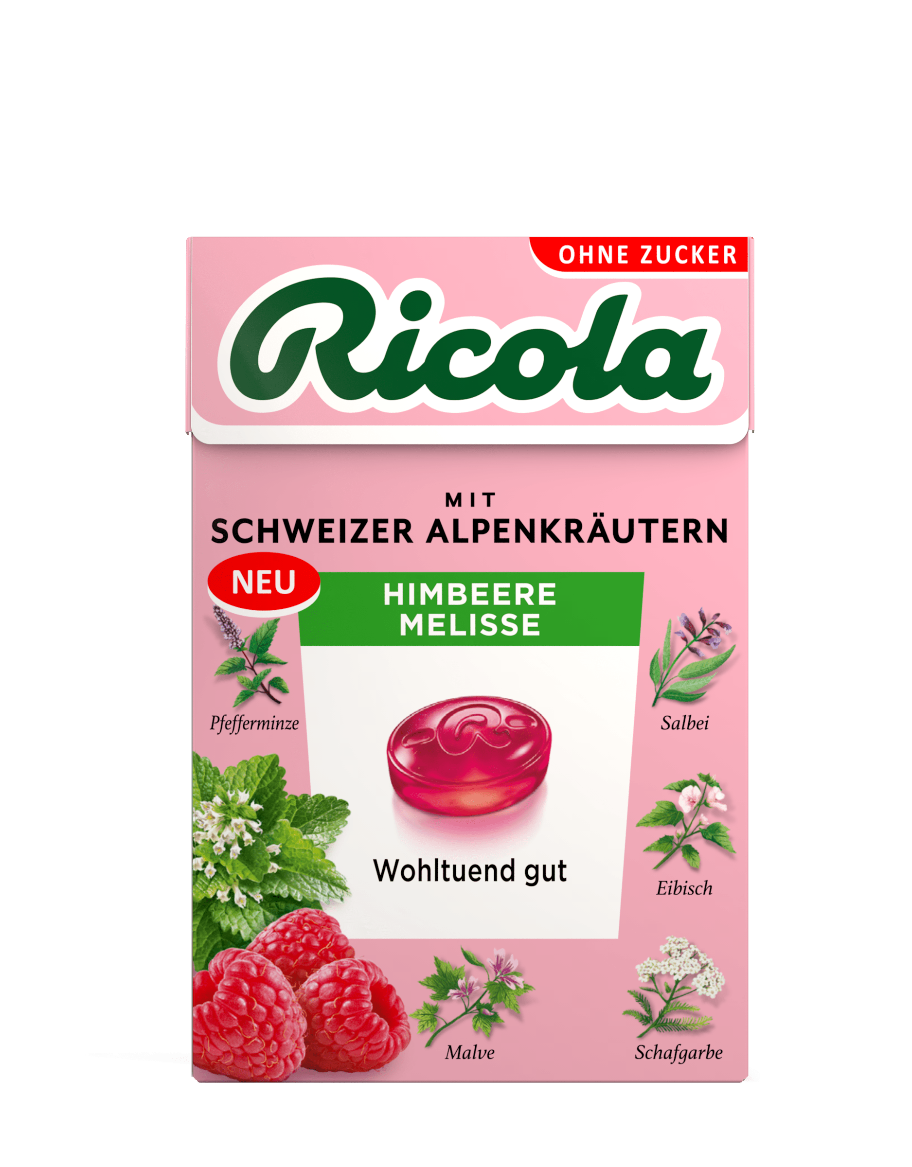Ricola – die Marktführerin bei Husten- und Halsbonbons erweitert ihr Sortiment um die aufregende neue Geschmacksrich- tung Himbeere Melisse. Ab dem 1. Juni 2023 können Bonbonliebhaber die fruchtig- frische Bonbonkreation in den Regalen von Supermärkten, Drogerien und Apothe- ken sowie Online entdecken und sich auf ein außergewöhnliches Geschmackser- lebnis freuen.