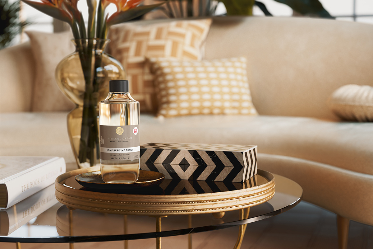The four fragrances Cashmere Rose, Hibiscus Dream (Floral), Velvet Oudh, and Mystic Cedar (Woody) seamlessly integrate into the existing Fresh and Sensual fragrance worlds, perfectly complementing them. Refillable favorites like room sprays, fragrance sticks, and candles ensure that the daily pampering ritual remains a conscious practice. The goal is to develop packaging that is optimally designed in terms of functionality, resource consumption, and environmental impact. With the new home fragrances, Rituals invites interior design enthusiasts to experience rooms in a completely new way. Thanks to the „Scent Zoning“ concept, different fragrances can be used strategically to give each area of the home a unique atmosphere and mood, stimulating the senses. Whether elegant rose, creamy vanilla, zesty bergamot, or warm oud – each fragrance composition transforms rooms into retreats full of personality and atmosphere.