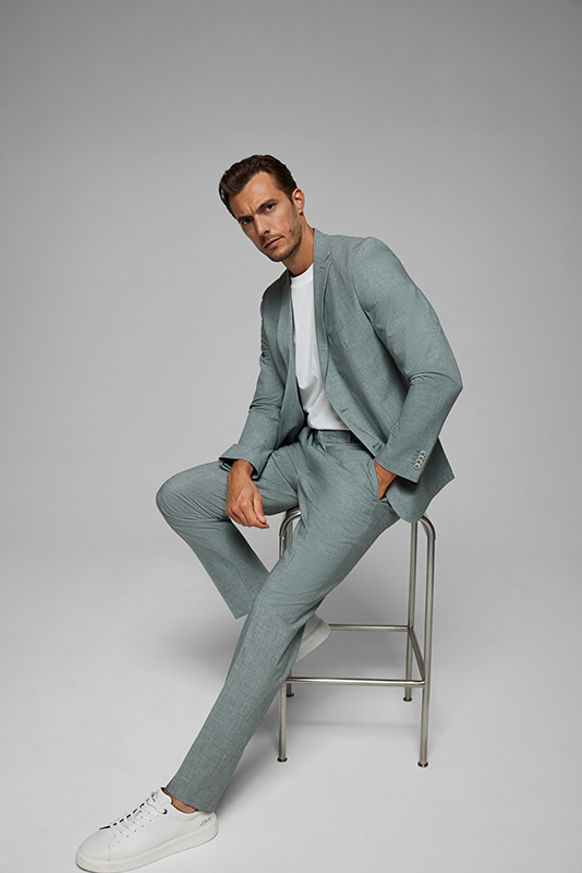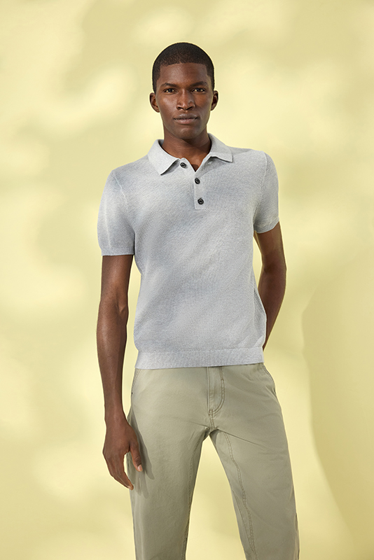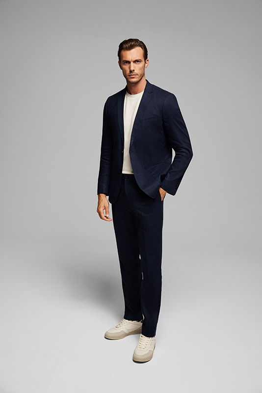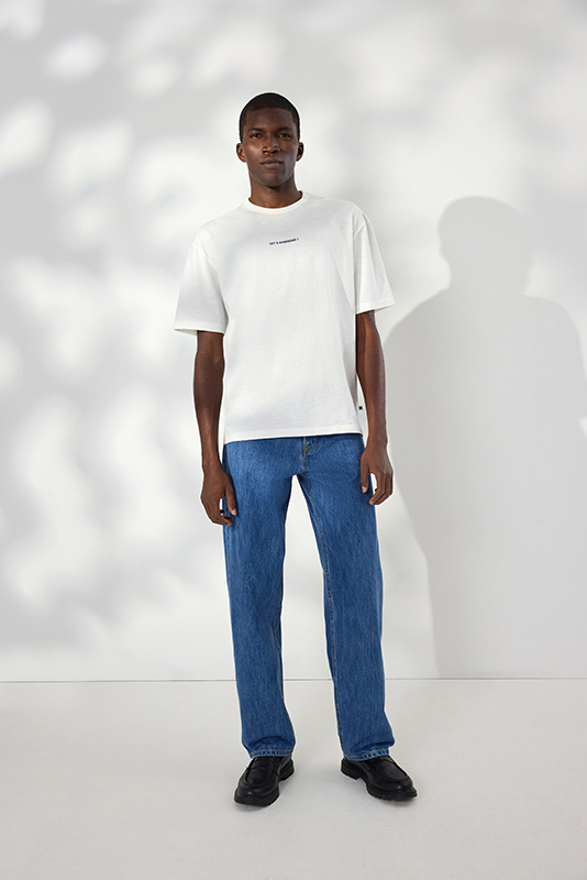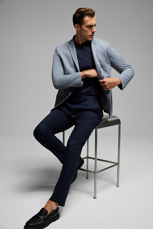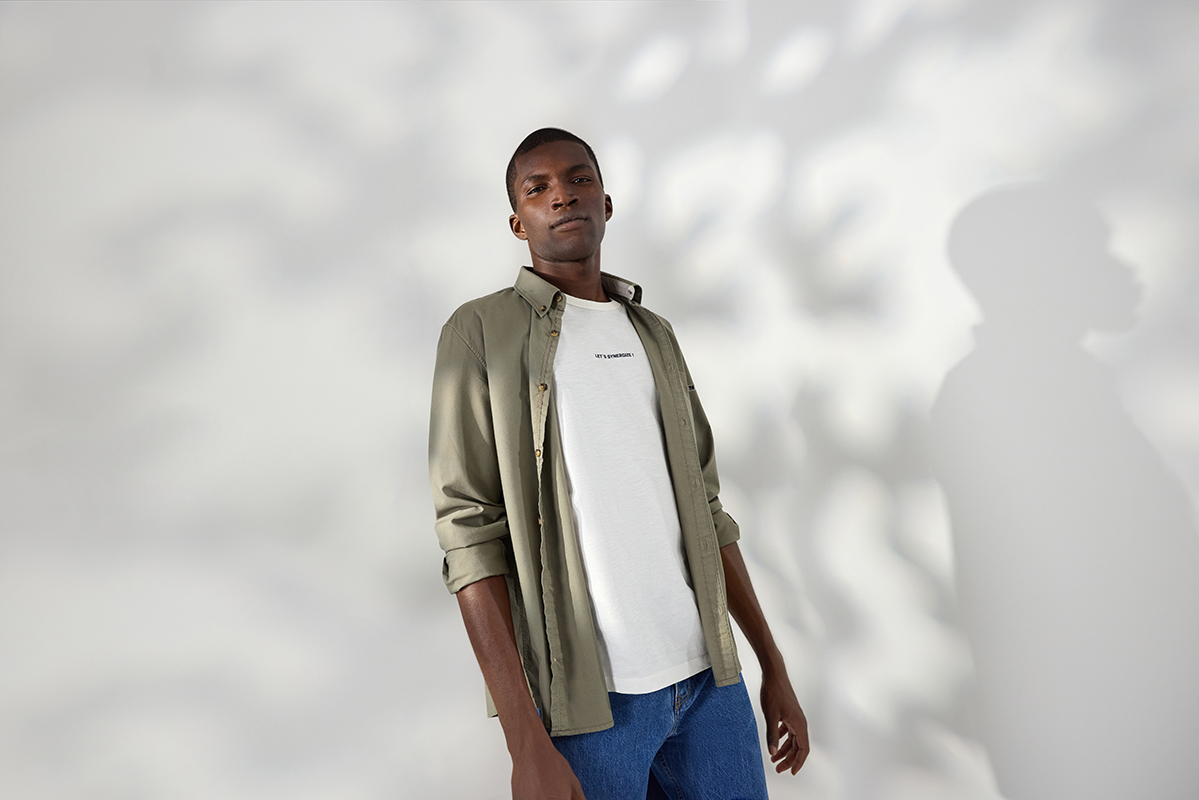In March, Spring Feelings brings the fresh dynamism of spring into play. Sporty shirts and relaxed casual trousers take center stage, combining workwear details with laid-back looks. A harmonious color palette of navy, khaki, clear blue, and a soft rose tone lends these contemporary looks a modern touch. A college license with a striking artwork concept further develops the graphic theme from previous months.