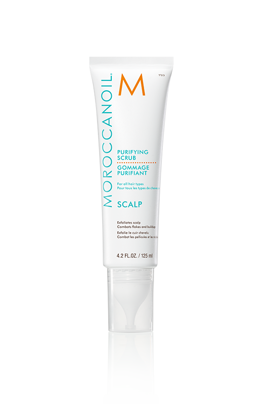 The Moroccanoil Purifying Scrub with argan shell powder gently exfoliates and reduces visible flakes, excess oil and deposits.