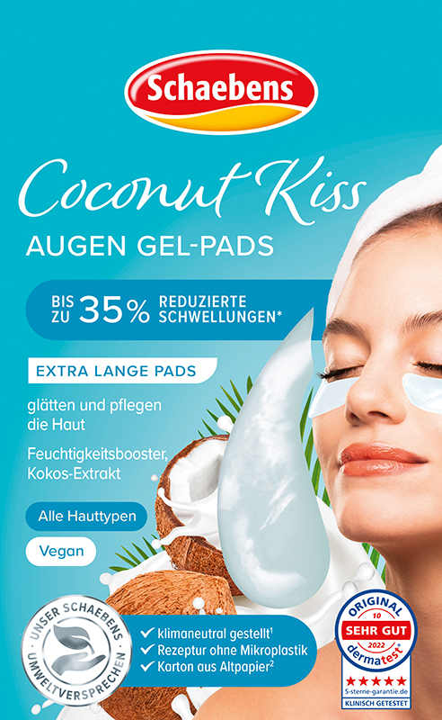 Die Rezeptur mit pflegendem Kokosextrakt und Feuchtigkeitsboostern füllt die Feuchtigkeitsdepots der Haut wieder auf und glättet feine Linien und Trockenheitsfältchen. Die kühlenden Pads reduzieren Augenringe und Schwellungen und sorgen für eine glatte und erfrischte Augenpartie.