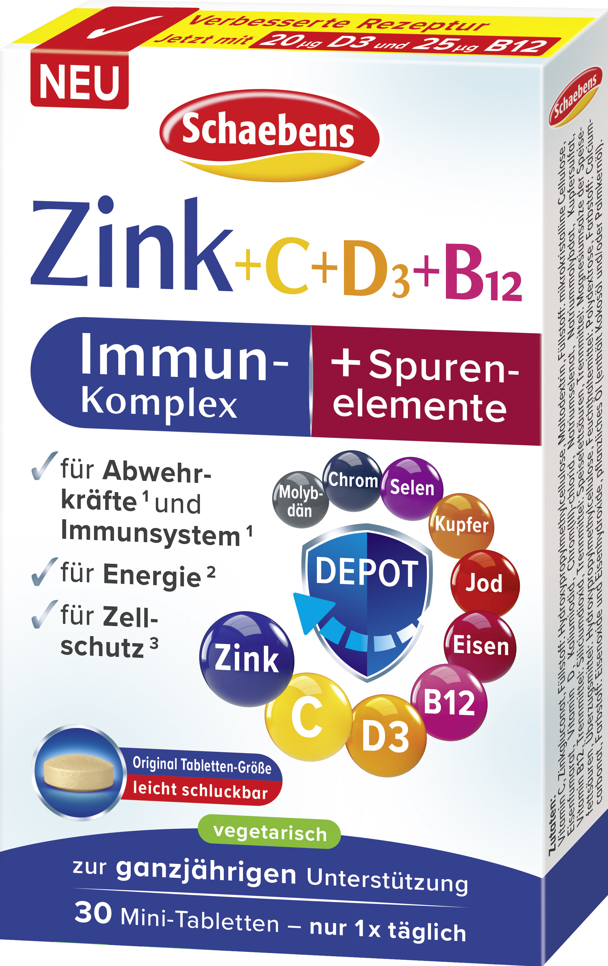 Zink + C + D3 + B12 Immun-Komplex + Spurenelemente