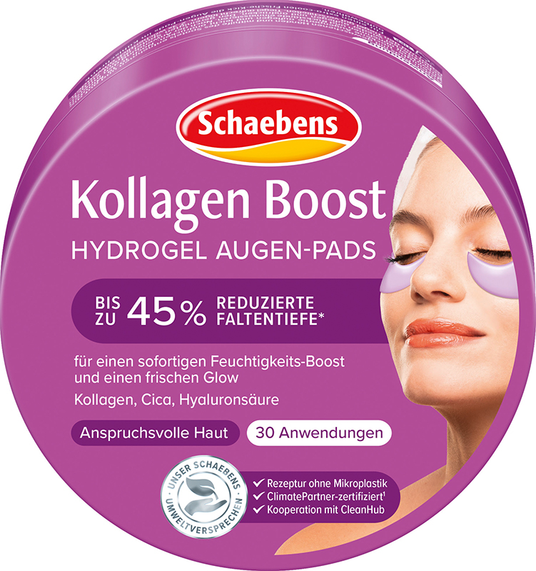 Renew your eye contour! Das Must-have gegen dunkle Augenringe und Augenschwellungen. Die Schaebens Kollagen Boost Hydrogel Augenpads mit Traubenfrucht-Extrakt wurden gezielt für die anspruchsvolle Haut der Augenpartie entwickelt. Angereichert mit Kollagen verbessern sie die Festigkeit sowie Spannkraft der Haut. Die leistungsstarke Formel mit Hyaluronsäure, Glycerin und Cica spendet sofort intensive Feuchtigkeit und reduziert Linien und Fältchen. Für eine straffe Augenpartie und einen wachen Blick!