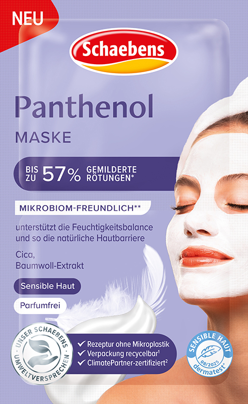 Comfort your skin! Die parfumfreie Panthenol Maske wurde speziell auf die Bedürfnisse sensibler Haut abgestimmt. Mit hautpflegendem Panthenol sowie Cica und Baumwoll-Extrakt hilft sie, Rötungen zu mildern und die Haut vor transepidermalem Wasserverlust zu schützen. Die mikrobiom-freundliche Formulierung ist besonders sanft und wirkt ausgleichend auf die natürliche Feuchtigkeitsbalance der Haut. Für ein ausgeglichenes Hautgefühl.