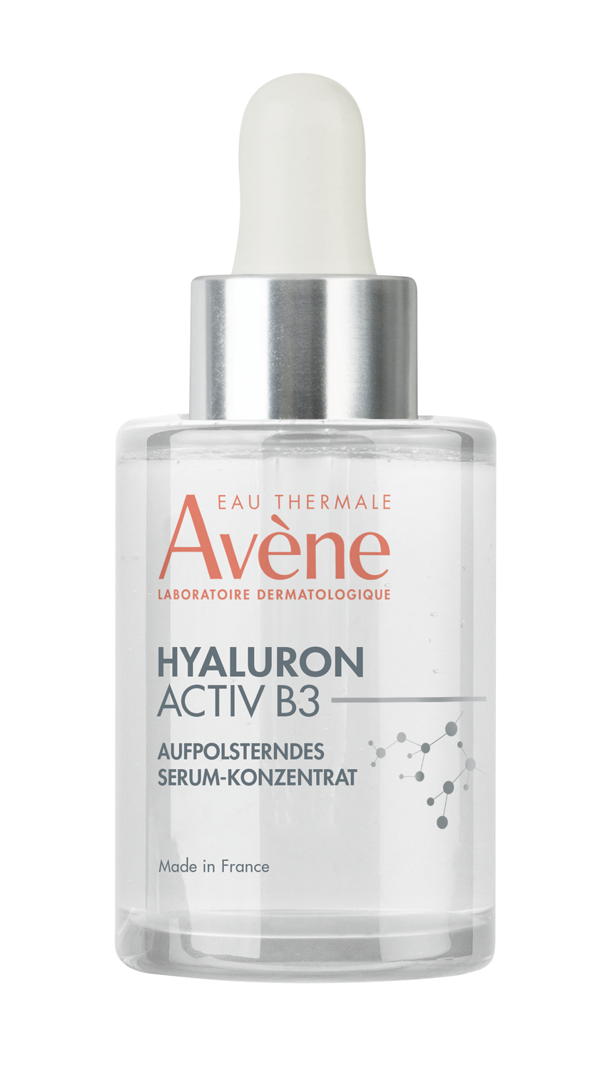 Als ideale Pflegeergänzung kommt das Hyaluron Activ B3 Aufpolsterndes Serum-Konzentrat mit insgesamt nur acht hochwirksamen Inhaltsstoffen aus. Als Make-up Base sorgt es dank seinem strahlenden Finish für ein frisches, jugendliches Hautbild mit Booster-Effekt.