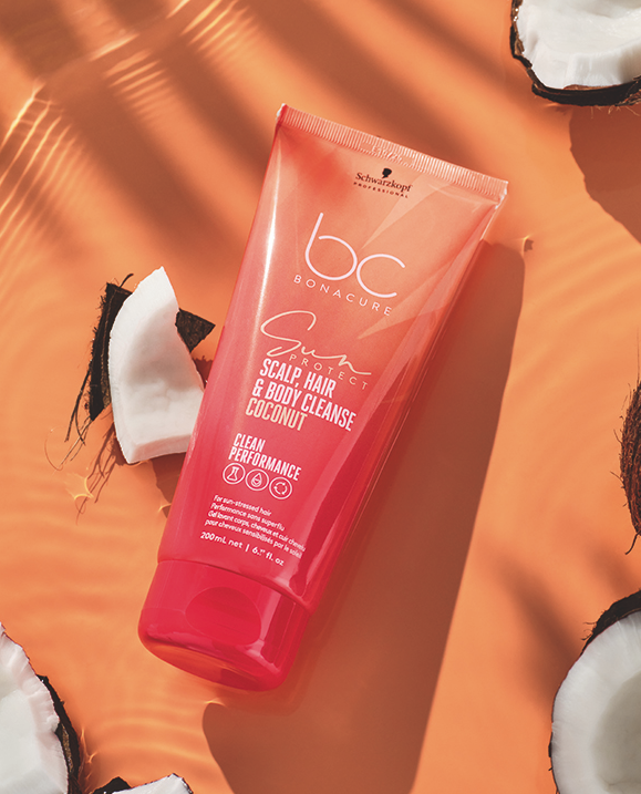 Bonacure Sun Protect Scalp, Hair & Body Cleanse – das einzige 3-in-1 Reinigungsshampoo, das sanft Rückstände von Sonnencreme, Salz- und Chlorwasser entfernt, ohne das Haar auszutrocknen.