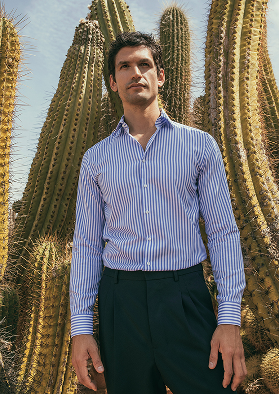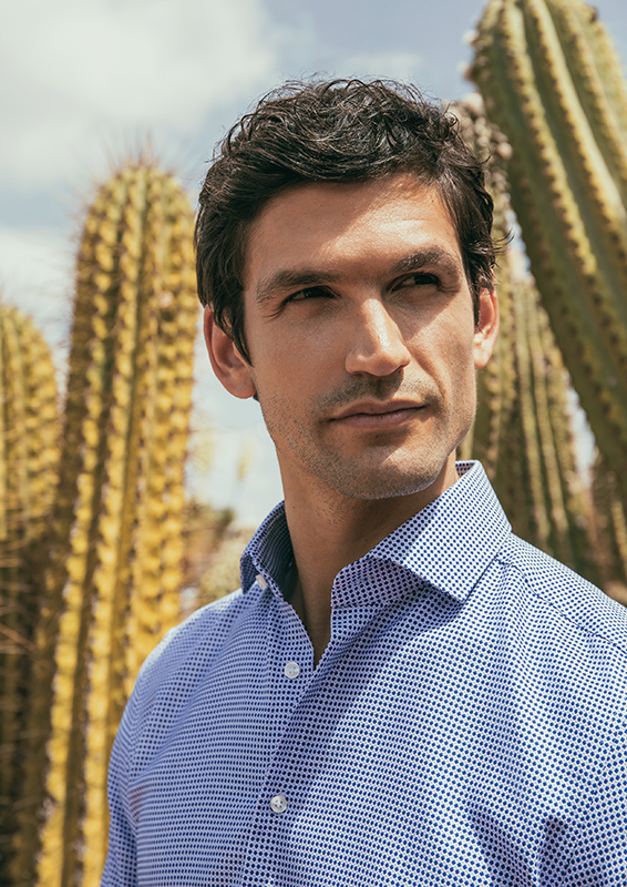 Functional features such as stretch, antimicrobial finishes or soft touch respond to the increasing need for dressed comfort and an active lifestyle. The theme features classic, graphic designs, light qualities and subtle colors with a high proportion of white. Plains, new structures, stripes and micro patterns are implemented on technical cotton.