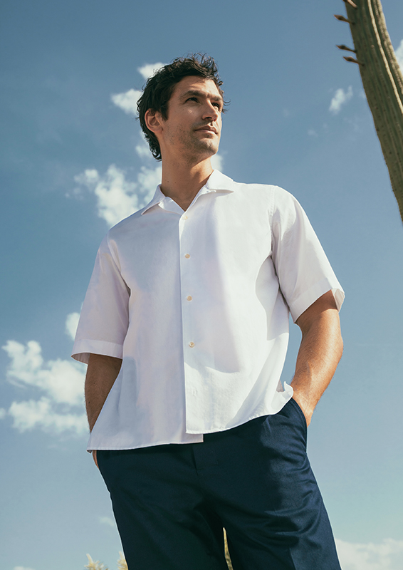 Softly washed shirts with button-down or Kent collars together with resort shirts form the thematic essence. As a harmoniously coordinated addition to the shirt range, the look is completed by overshirt versions, chinos and Bermuda shorts. In the product image, the focus is on Oxfords, soft twills, blue or white denims and a CO/linen mix. The rounding knitting program is based on light merino knits, Pima cottons and creped cotton qualities and is complemented by summery linen blends. There are also T-shirts and polo styles in mercerized cotton and fine-grain piqué.