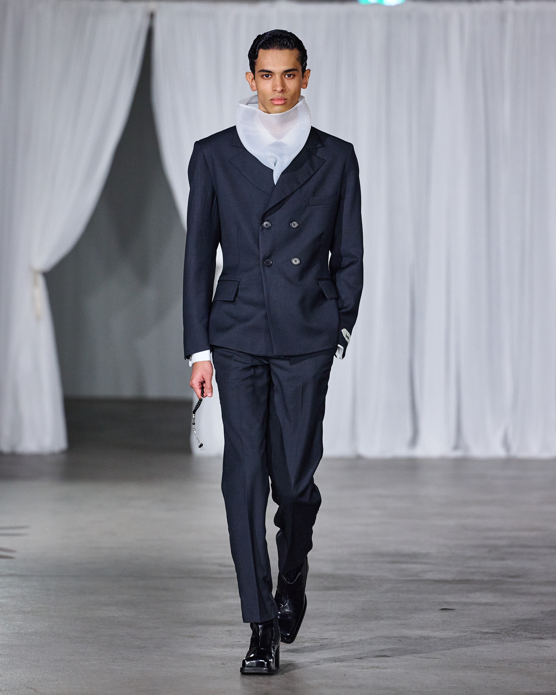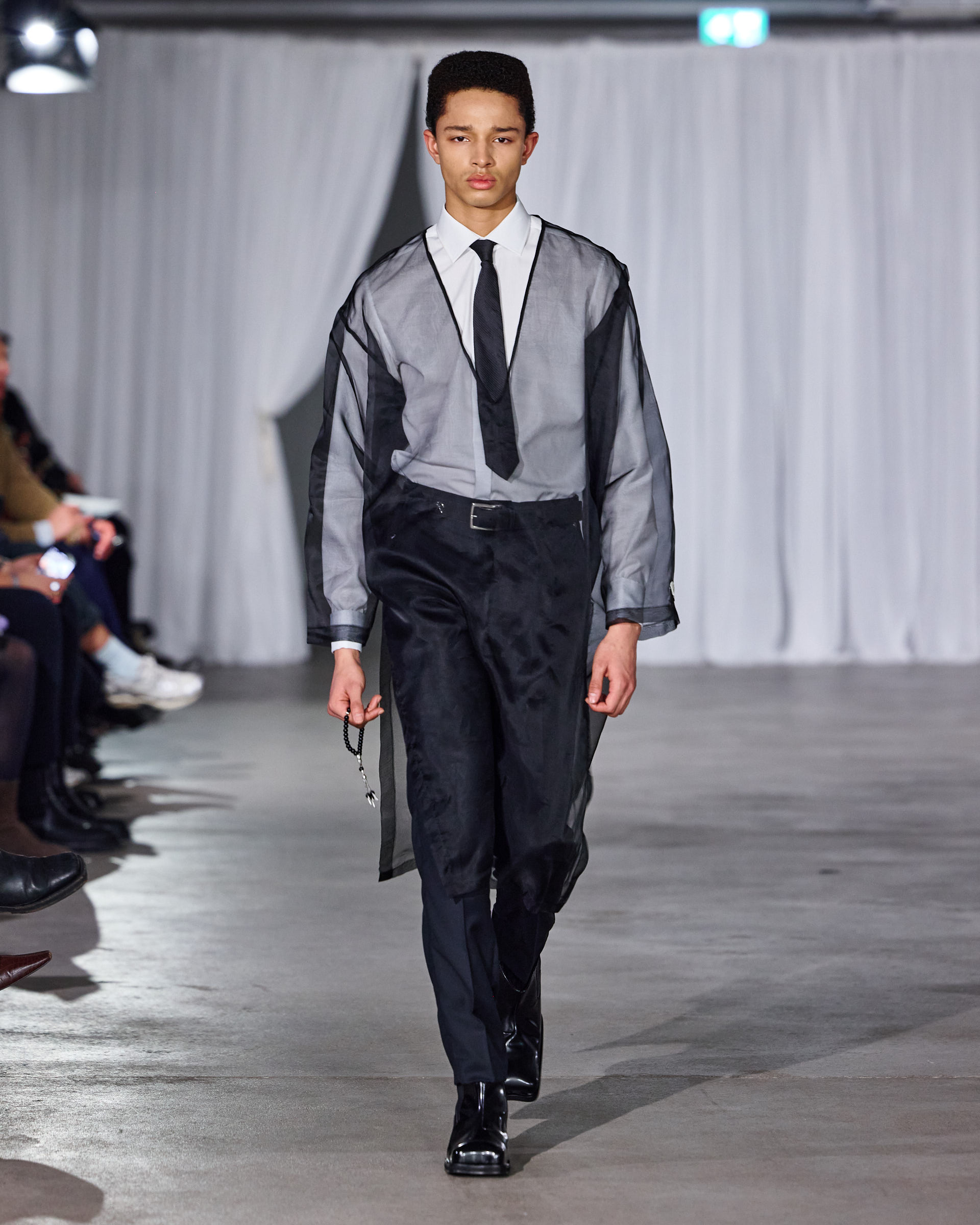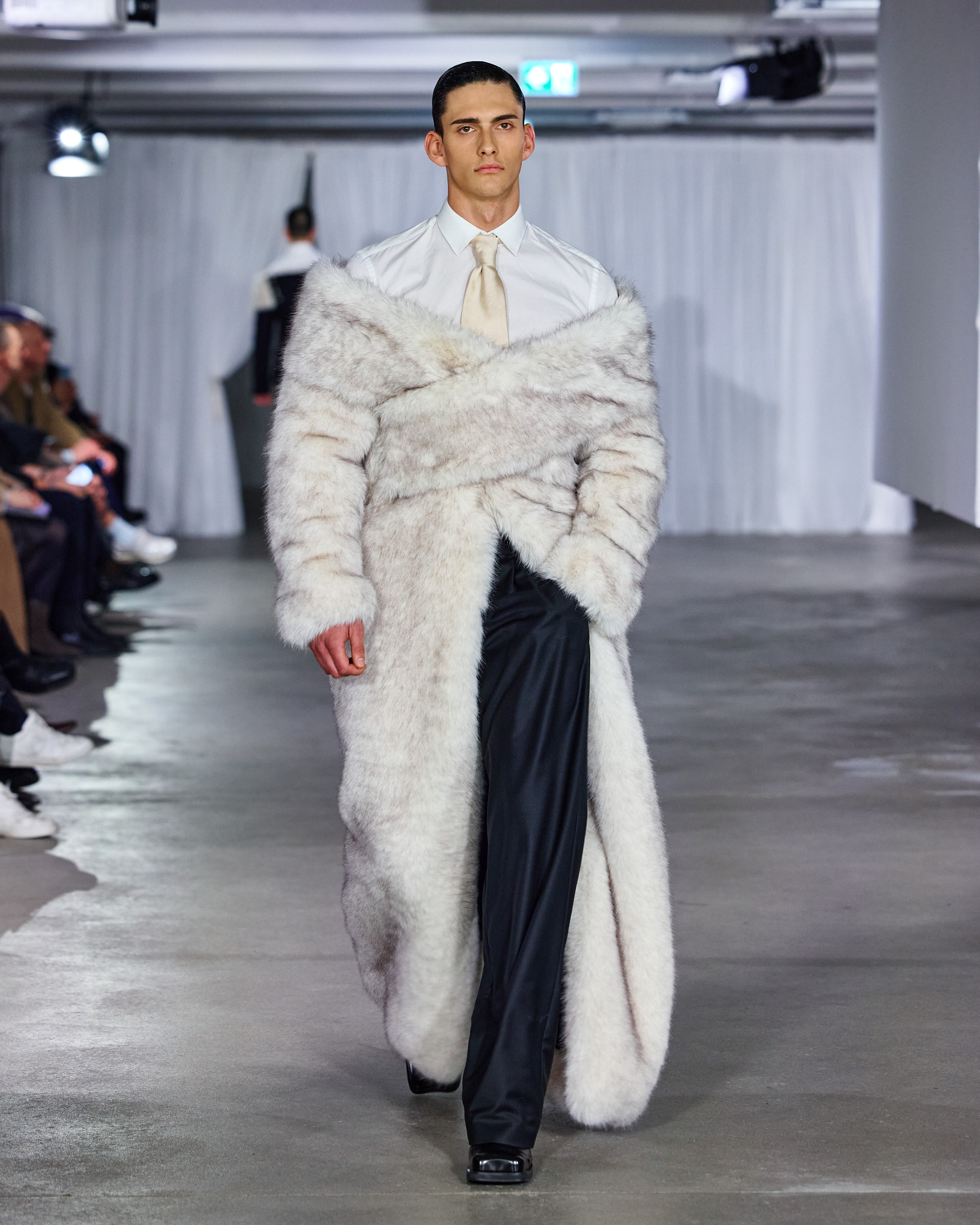 The collection addresses the exploration of parallel worlds and the way we perceive reality. The high-quality shirts from Seidensticker fit seamlessly into the overall concept of the show and underlined the message of the collection with their perfect fit and craftsmanship precision – a homage to dignity, elegance and craftsmanship. The detail, the perfect cut and the workmanship of the shirts are just as important as the philosophical depth that lies in the entire collection. The show, held in the heart of Berlin, was framed by a draped muslin set reminiscent of couture salons of yesteryear.