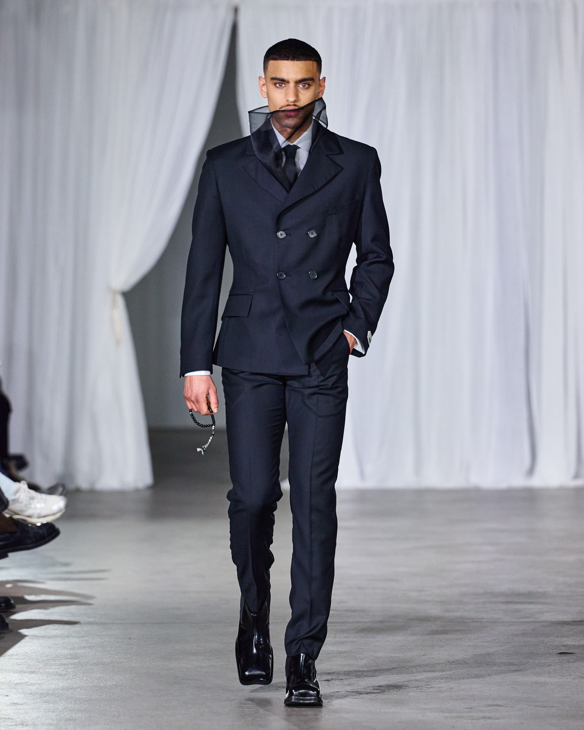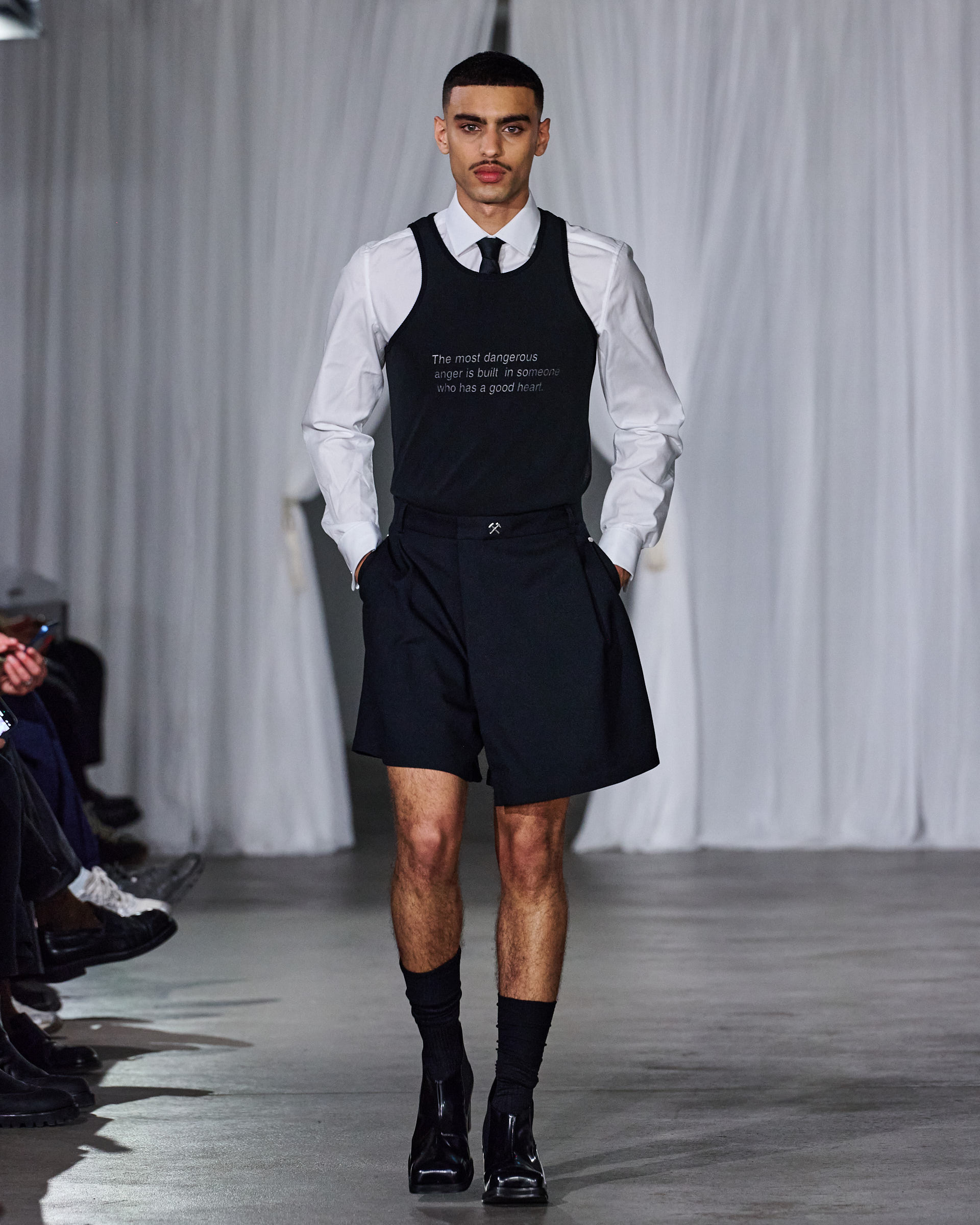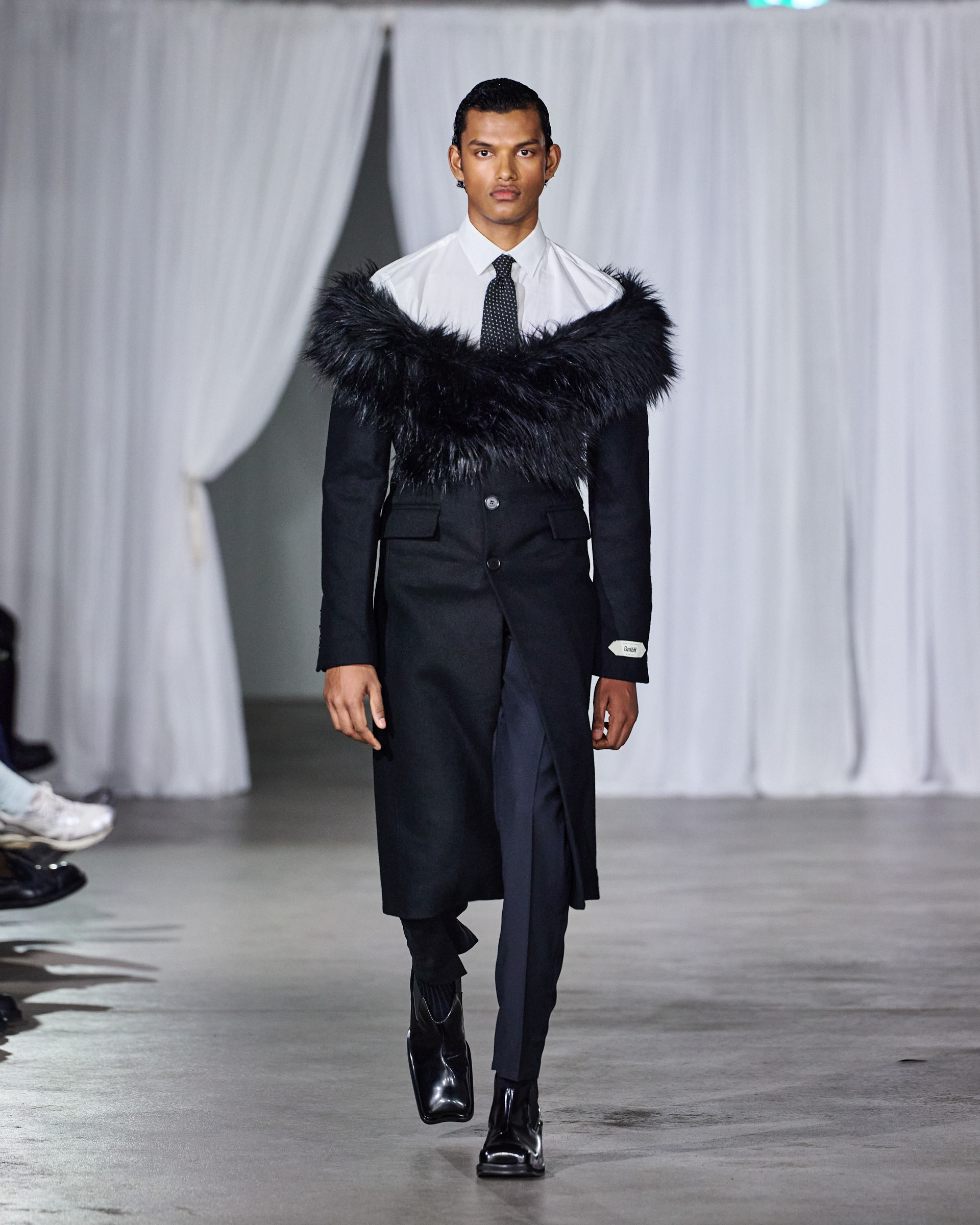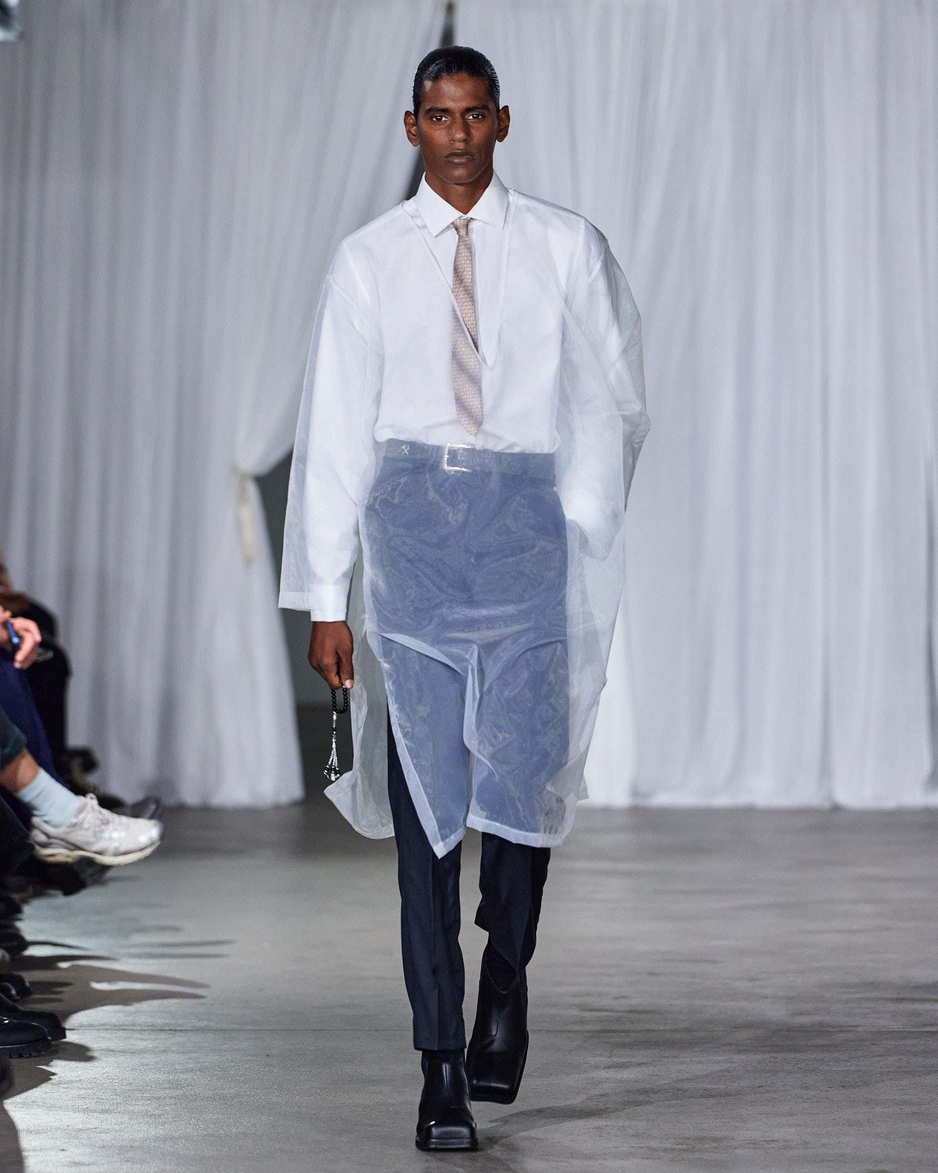 The collection addresses the exploration of parallel worlds and the way we perceive reality. The high-quality shirts from Seidensticker fit seamlessly into the overall concept of the show and underlined the message of the collection with their perfect fit and craftsmanship precision – a homage to dignity, elegance and craftsmanship. The detail, the perfect cut and the workmanship of the shirts are just as important as the philosophical depth that lies in the entire collection. The show, held in the heart of Berlin, was framed by a draped muslin set reminiscent of couture salons of yesteryear.
