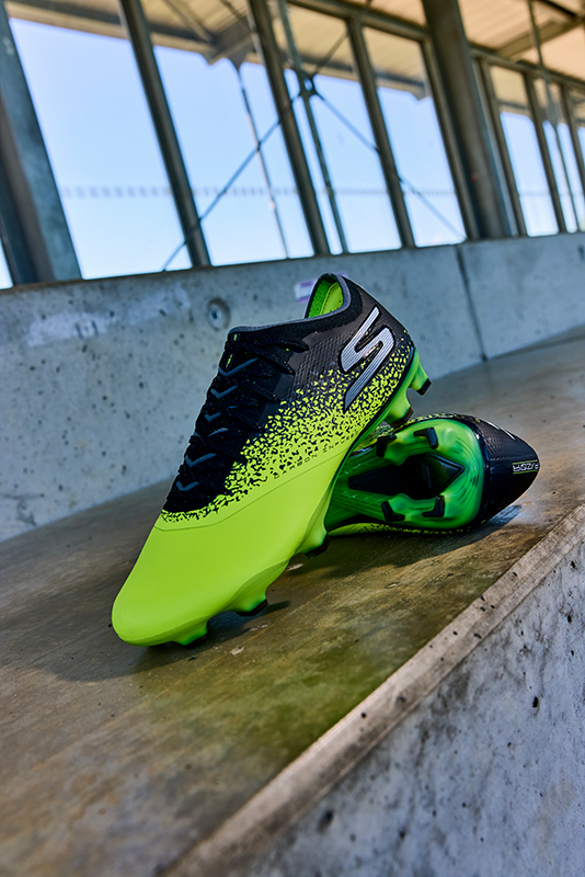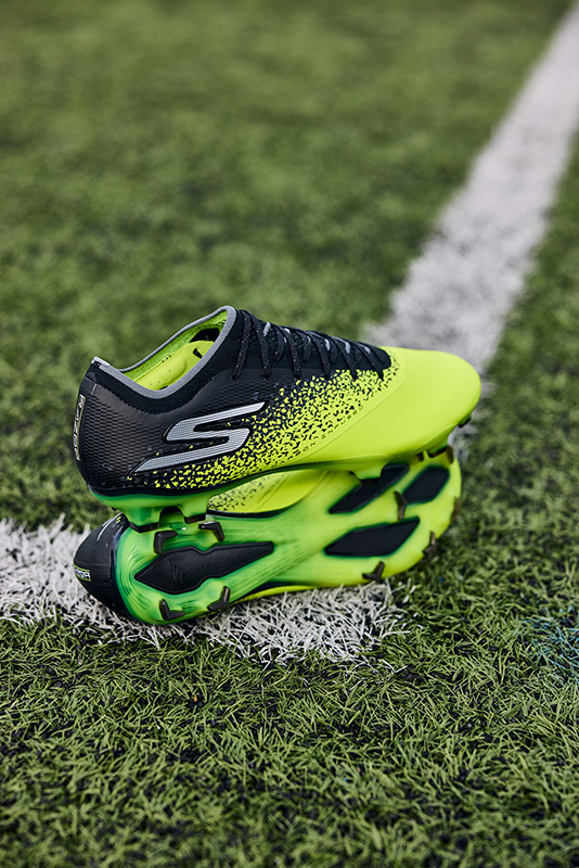 The Skechers football collection includes three elite models, available in different colorways for women and men, and are part of the Evolution Pack pictured above. With the eye-catching yellow hue and black accents, the bold and bright design is guaranteed to be an eye-catcher on the pitch.