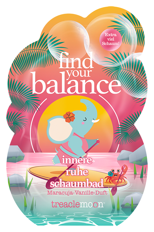 Das find your balance Schaumbad von treaclemoon lädt an einen idyllischen Rückzugsort voller Gelassenheit ein. Der saftig-fruchtige Duft von Maracuja wird umhüllt mit cremig-süßer Vanille und verleiht das Gefühl, die Sinne in sanfter Harmonie zu vereinen.