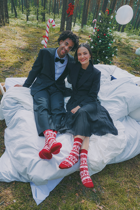 Christmas themed argyles with bows – Burlington Sweet Ribbon – or snowflakes and Santa hats – Burlington X-Mas Argyle – are a must-have for all fans of all-over patterns. The saying “IT’S COLD OUTSIDE” adorns the Burlington Cold Outside stocking for women along with a large, Christmas-themed mug. For men, a snowboarding Santa with the slogan “DRIVING HOME FOR CHRISTMAS” on the Burlington Snowboarding Santa stocking is an eye-catcher.