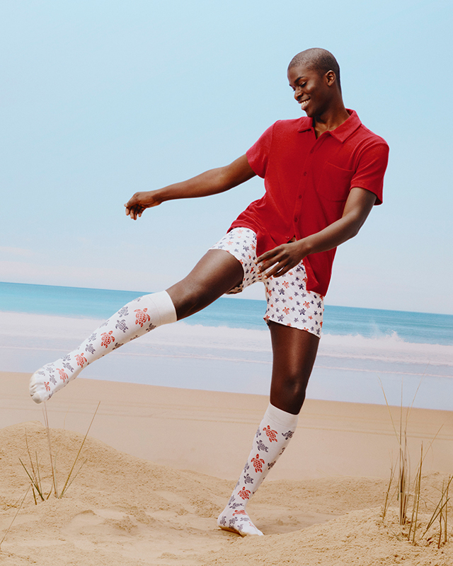 It’s the first (and possibly the only!) time you’ll catch Vilebrequin’s turtles in legwear. Swimwear’s most recognizable sea creature is coming to an ultra-colorful range of co-branded swim trunks and socks for men, women, and kids for High Summer 2024. Serving style whatever the climate or event, legwear from the collection features everything from a classic Falke kneehigh sock to a sportier sneaker sock model and an uncomplicated calf-length sock.