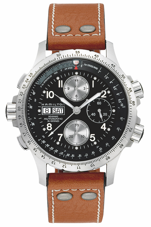 In the air, the Hamilton Khaki Aviation X-Wind Automatic Chronograph embodies the interplay of precision and adventure. This innovative timepiece offers the precision pilots need to open new flight paths and discover innovative perspectives. Equipped with the first drift angle calculator in a wristwatch, the technically advanced yet timeless chronograph combines cockpit-ready functions with versatile wearability and style.