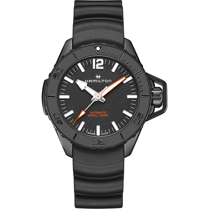 On the high seas, a powerful and robust watch is essential. The Khaki Navy Frogman Automatic is perfect for extreme conditions—whether chasing the perfect wave, diving deep beneath the ocean’s surface, or deep-sea fishing. With water resistance up to 30 bar (300 meters) and a distinctive crown guard, the Khaki Navy Frogman Automatic represents technical strength and maritime robustness.