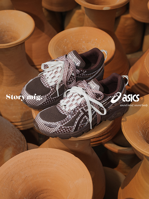 Launching in two distinct gingham colourways – one in earthy brown tones, the other a lilac and ecru – the GEL-VENTURE 6 sneaker reflects Story mfg.’s love of natural colour and texture. Each pair is made using a blend of recycled and consciously sourced materials, underlining both brands’ shared commitment to a more sustainable future. It’s a shoe that treads lightly – made for long walks, slow afternoons, and the meandering paths we take when we’re not in a rush.