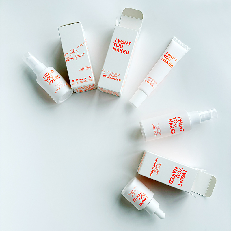 The latest coup from the I WANT YOU NAKED manufactory: the SKIN BARRIER BOOST facial care series with a niacinamide active ingredient complex. True to the motto „Help the skin protect itself,“ the four-part series is aimed at stressed skin. Never before have so many people had problems with it. There are many reasons for this. Negative environmental influences, air pollution, unhealthy makeup, or excessive skincare routines attack the skin’s protective barrier. The consequences are redness, irritation, dry, flaky, or blemished skin, and premature skin aging.