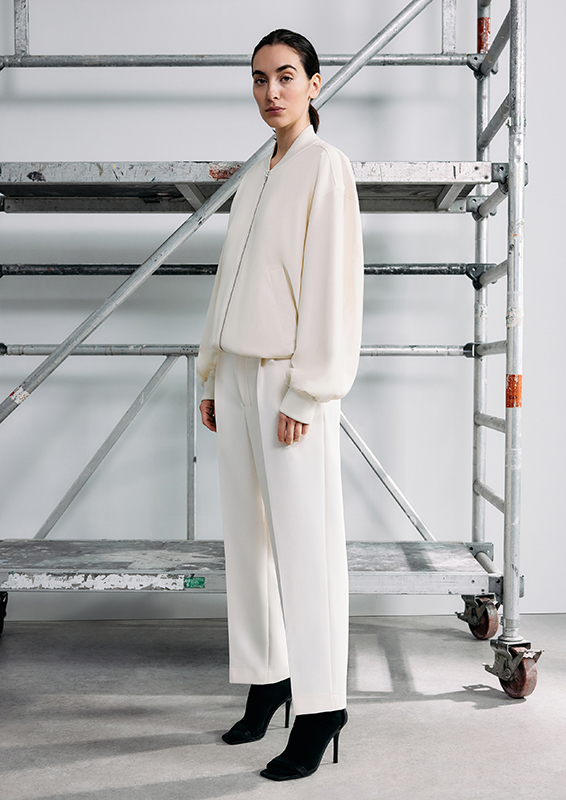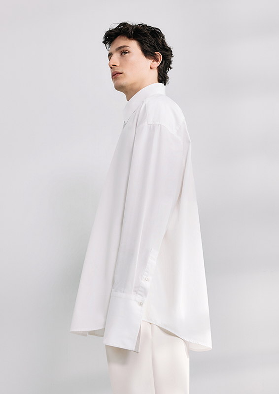 Relaxed, oversized, boxy – the silhouettes deliberately break with conventions. Openwork details, resort-inspired cuts, and evening vibes create striking highlights. Compact cottons, recycled polyesters, and soft wool blends meet delicate transparencies. Texture meets lightness, creating a palpable tension. Solid colors and fine stripes reinforce the purist, urban character. Blue and grey denim expand the range and give it a harmonious finish.