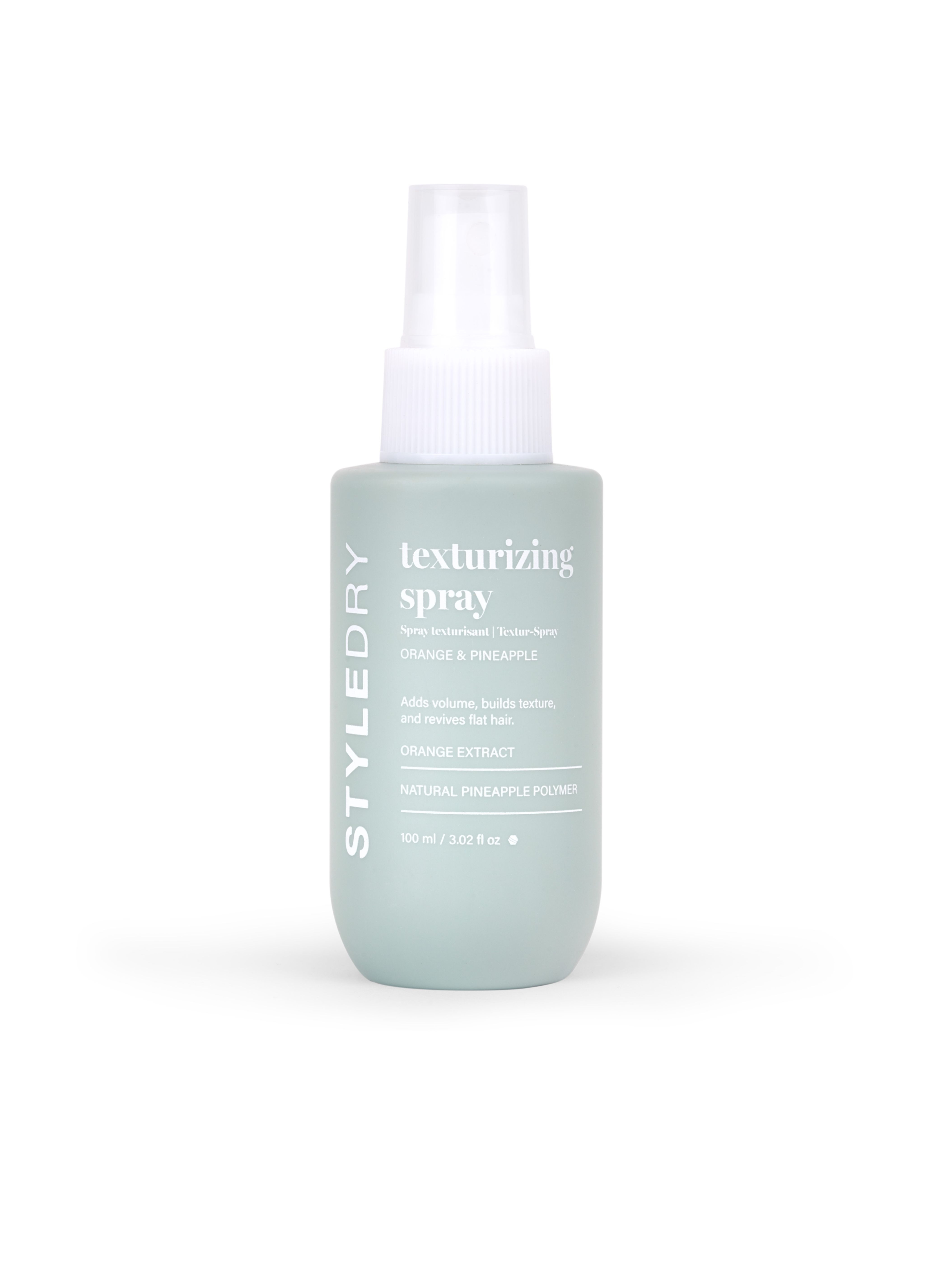 Styledrys Texturizing Spray ist die Antwort auf lebloses, feines Haar. Es kombiniert die Leichtigkeit eines Trockenshampoos mit der Definition eines Stylingsprays, ohne das Haar zu beschweren.