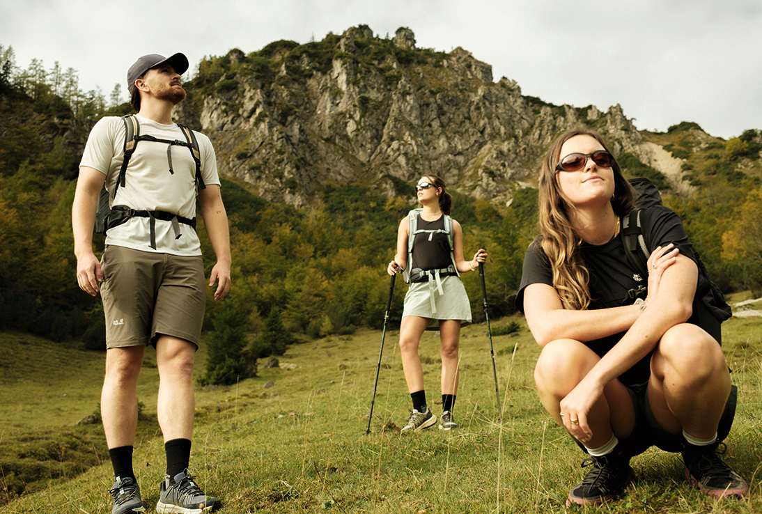 Summer, sun, sunshine – and unfortunately, sometimes rain and wind too. But the new summer hiking collection from Jack Wolfskin is designed for just such moments: lightweight gear that can be mixed and matched to suit any terrain and any weather. From long-sleeved shirts and jackets to shorts – every piece works together for carefree hikes.