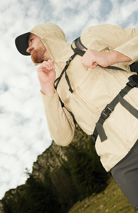 The collection consists of a functional outfit system with smart layering solutions, versatile cuts, and high-quality fabrics. This allows you to combine each piece to flexibly face sun, rain, or wind.