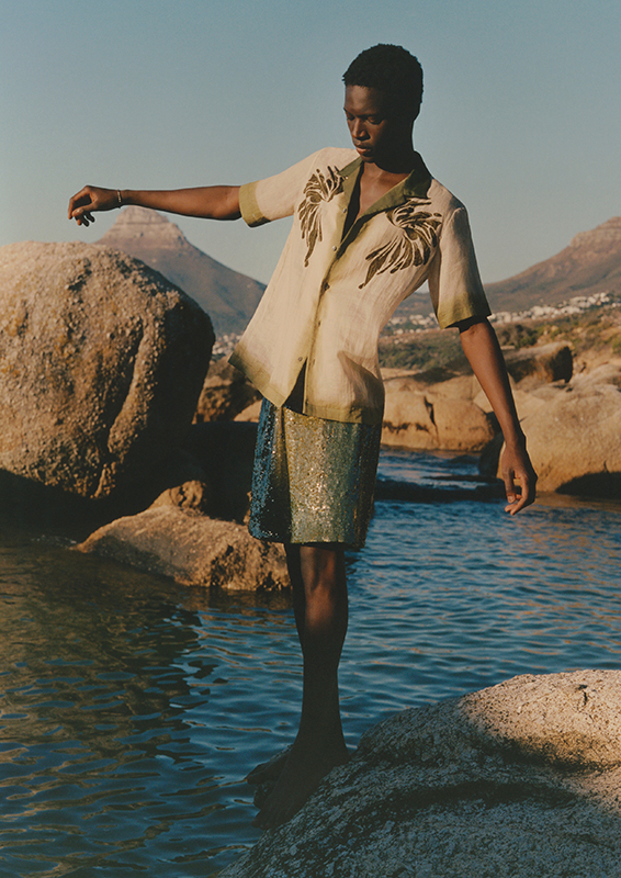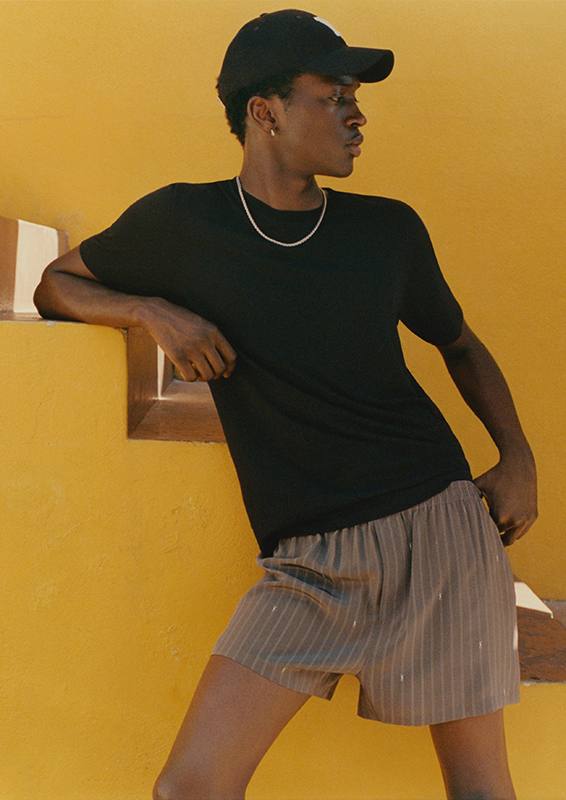 Sartorial shirting and short sets take centre stage, featuring standout pieces from LOEWE to BODE. Highlights include a timeless printed button-down shirt paired with bold sequin shorts from Dries Van Noten, seamlessly transitioning from day to night. Complementing this is a linen set from MR PORTER’s Made with Craft designer, Kartik Research – an exquisite handloomed ensemble, with a lightweight paisley shirt and pleated shorts adorned with meticulous hand embroidery, blending impeccable style and artisanship. Throughout the collection, timeless staples are reinterpreted with modern flair, exemplified by The Elder Statesman’s iconic oversized tee, now in a sun-washed bubblegum pink – capturing the effortless spirit of summer.