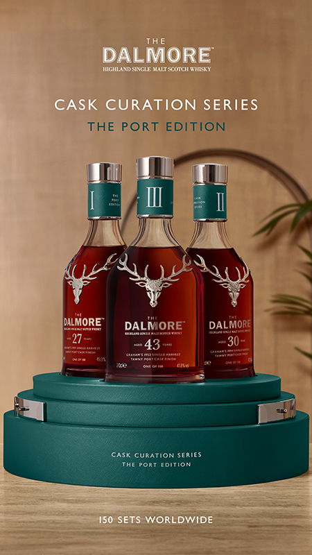 Die Dalmore Cask Curations Series feiert ihr Debüt im Hause Symington Family Estates – den Herstellern von Graham´s Port. Die Cask Curation Series – The Port Edition ist das zweite Kapitel in der Serie, die die Kunst der Whiskyherstellung bei The Dalmore feiert und die Rolle der erlesenen Fässer von den besten Winzern der Welt würdigt. Die neue Serie ist streng auf 150 Sets weltweit limitiert und auch für den deutschen Markt gibt es lediglich ein Set von diesem exklusiven Trio.