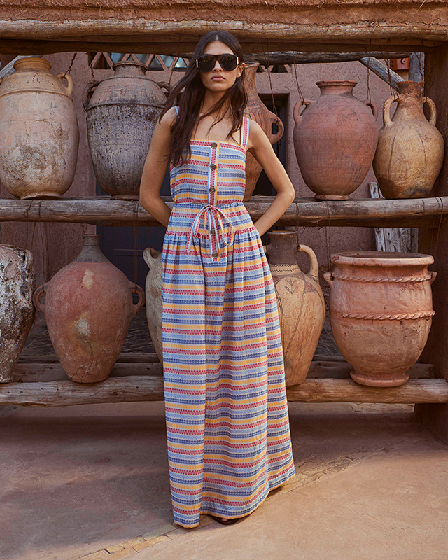 The color palette shines with vibrant, sun-kissed tones – from spicy hues to shades of blue – while the prints evoke the beauty of hidden gardens, the charm of majolica tiles, and the timeless appeal of stripes and Paisley patterns.