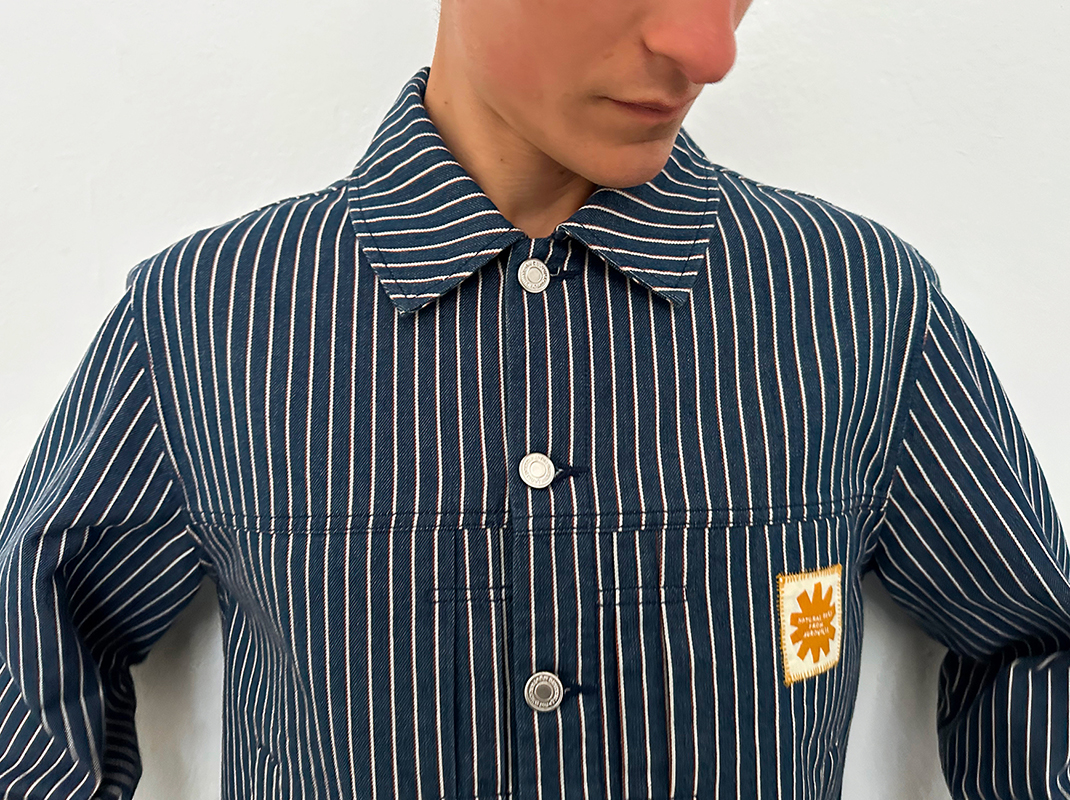 Following the dyeing of the yarns, the weaving process, cutting, and garment construction take place at Thinking MU’s GOTS-certified production facility in India, ensuring social and environmental standards throughout the entire value chain.