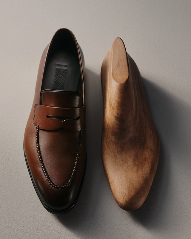 To kick off spring, Ferragamo presents a selection of casually elegant looks that harmoniously blend lightness and sophistication. The focus is on wide-legged suits, which can be worn either with an overcoat or as a relaxed ensemble of jacket, shirt, and trousers. The silhouettes appear relaxed and modern, while maintaining a clean, stylish line and underscoring the brand’s commitment to timeless elegance.