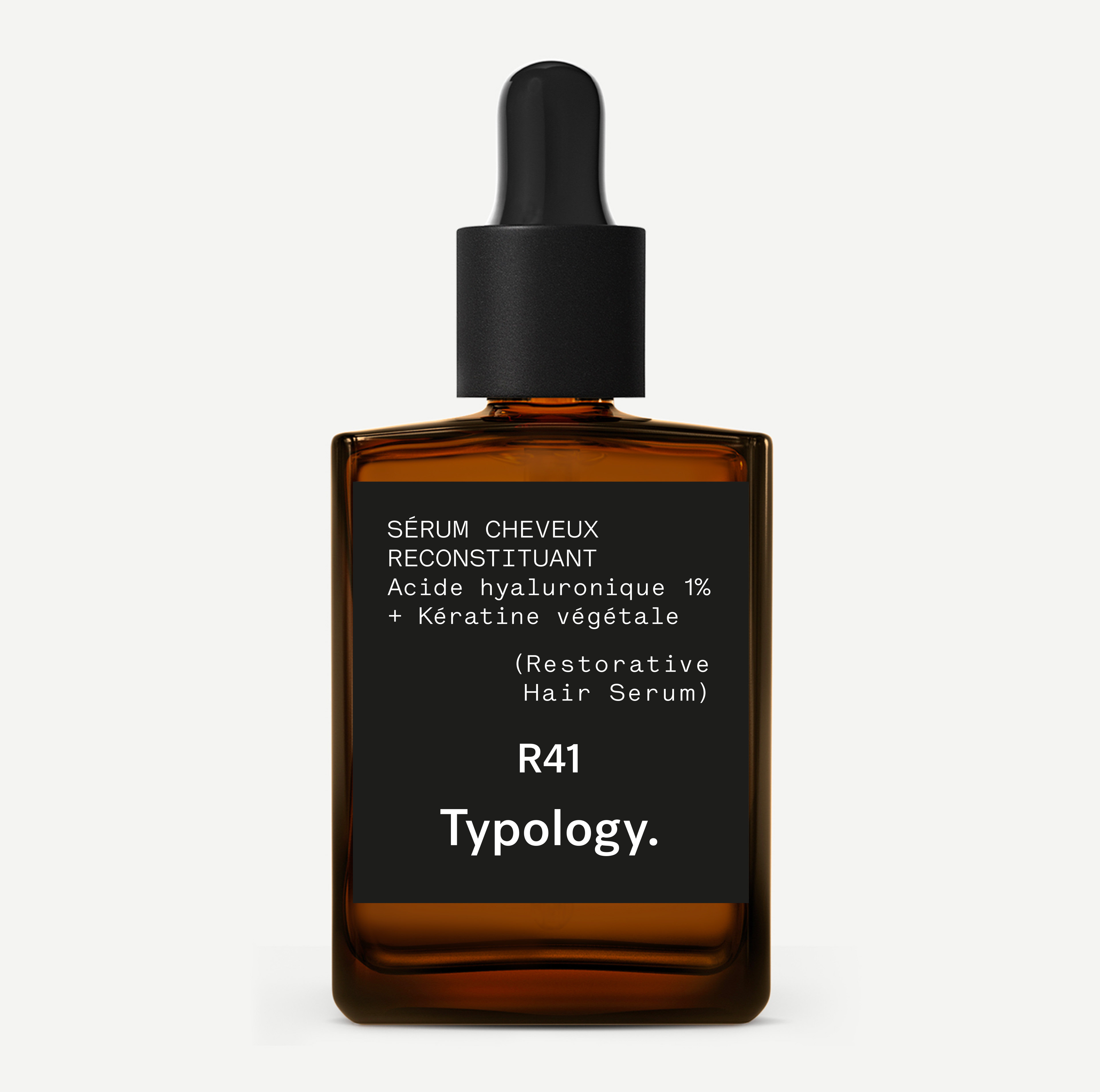The R41 Regenerating Hair Serum intensely moisturizes the hair fiber and helps to visibly reduce breakage. The combination of 1% hyaluronic acid and plant-based keratin strengthens the hair structure, improves elasticity, and gives hair a smoother, shinier finish – without weighing it down.