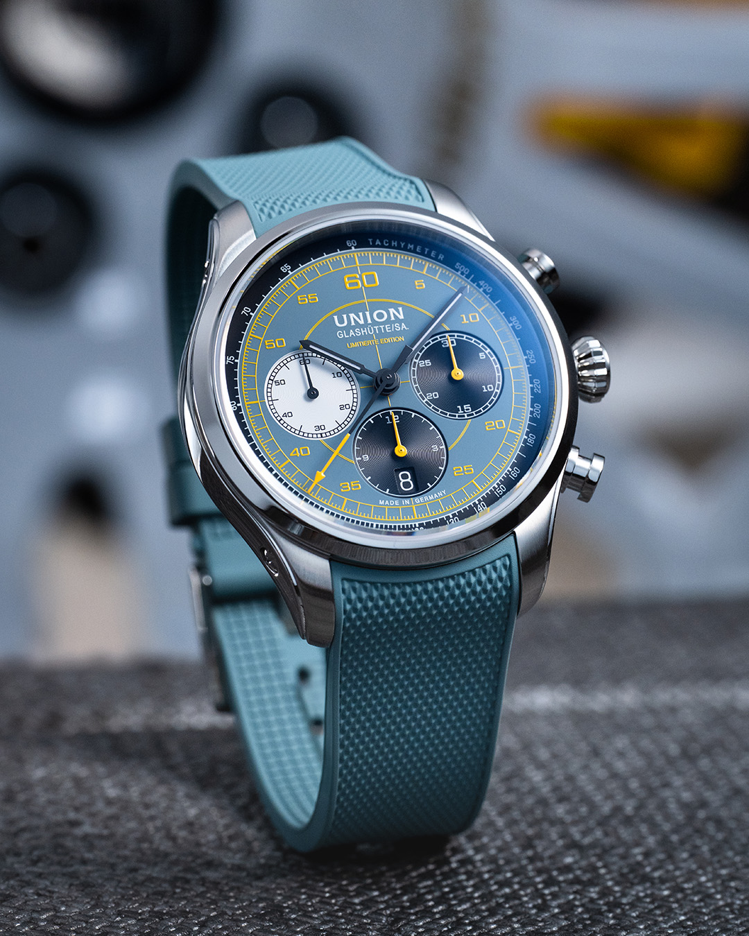 For the first time, UNION GLASHÜTTE is not using a German vehicle as the inspiration for its Speedster series, but rather an iconic Italian design – a bold move that is sure to set collectors‘ hearts racing. The watch is strictly limited worldwide and comes in an exclusive limited edition box with an interchangeable strap.