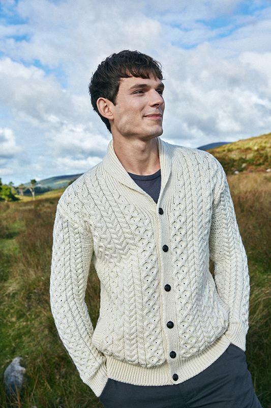 Soft tones like Ice Blue or Sage Marl capture the clarity of the sea and meadows, while warm colors like Sunflower or classic Natural White evoke summer blossoms and rugged coastal landscapes. Each shade is inspired by nature and developed exclusively for the Irish knitwear manufacturer.