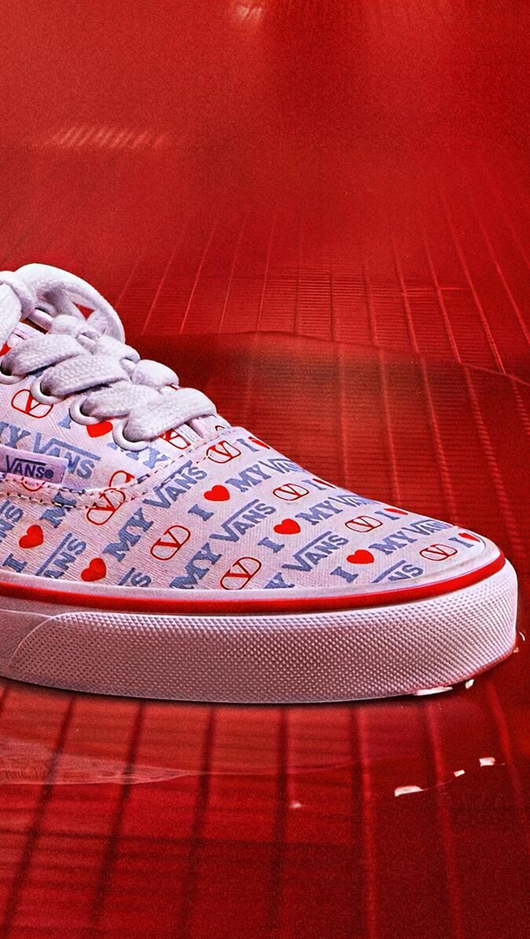 Each pair comes in special packaging highlighting the Vans checkerboard motif, reimagined with the Valentino VLogo Signature.