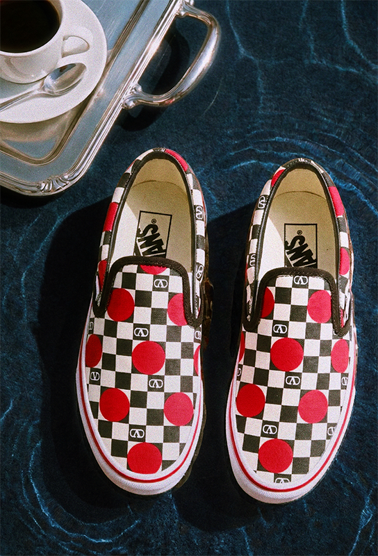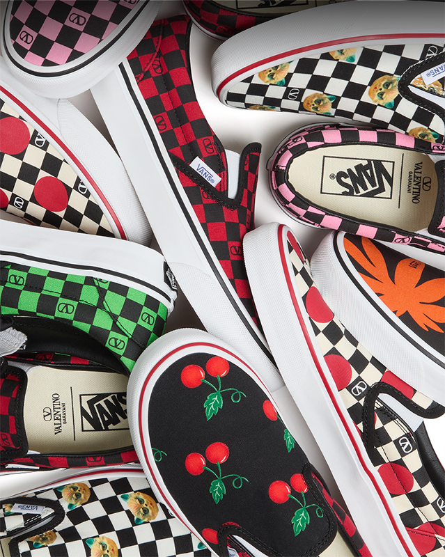 Each pair comes in special packaging highlighting the Vans checkerboard motif, reimagined with the Valentino VLogo Signature.