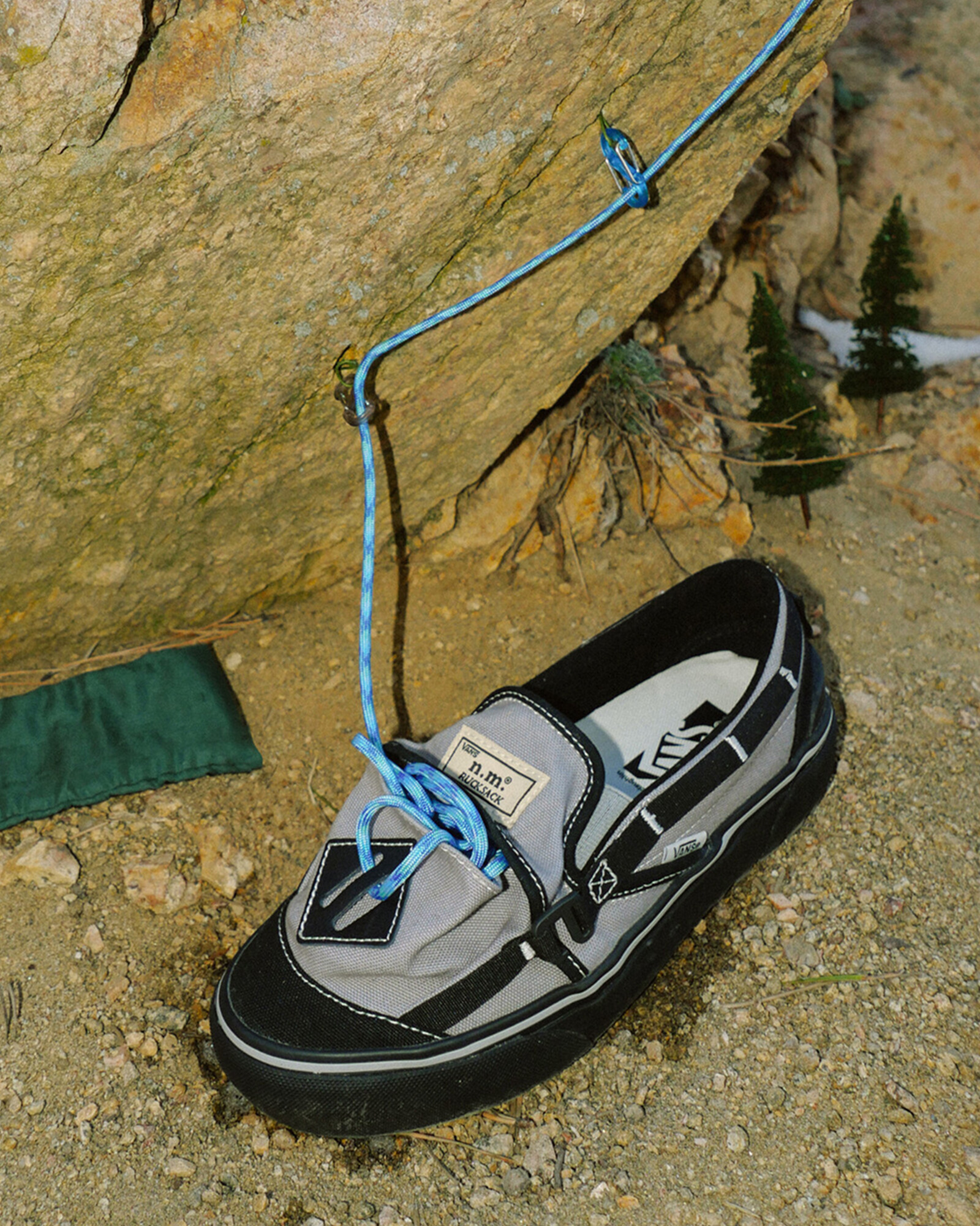 The collaboration features the capable Vans x Nicole McLaughlin Slip-On RS with a rucksack pocket in the toe and adjustable nylon webbing. The Slip-On RS is also built with durability and functionality in mind, with an upper built from a 40% recycled canvas and treated with PFC- free DWR for waterproofing. And on the outsole, the lugged tread pattern provides multi- surface traction. Blending utility and style, the coordinating Vans x Nicole McLaughlin Rucksack doubles as a climbing chalk bag made from a durable 40% recycled canvas while the 80% organic cotton Vans x Nicole McLaughlin Rucksock features a cargo pocket for extra merit.