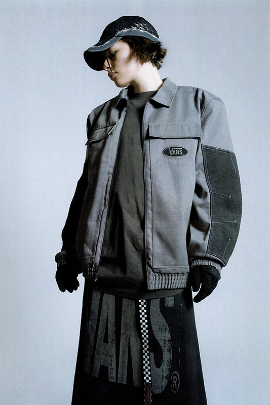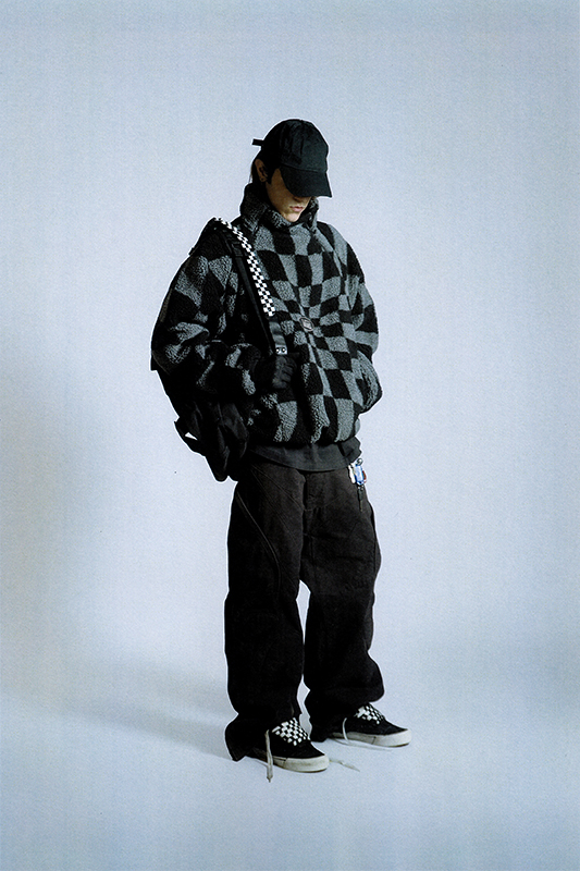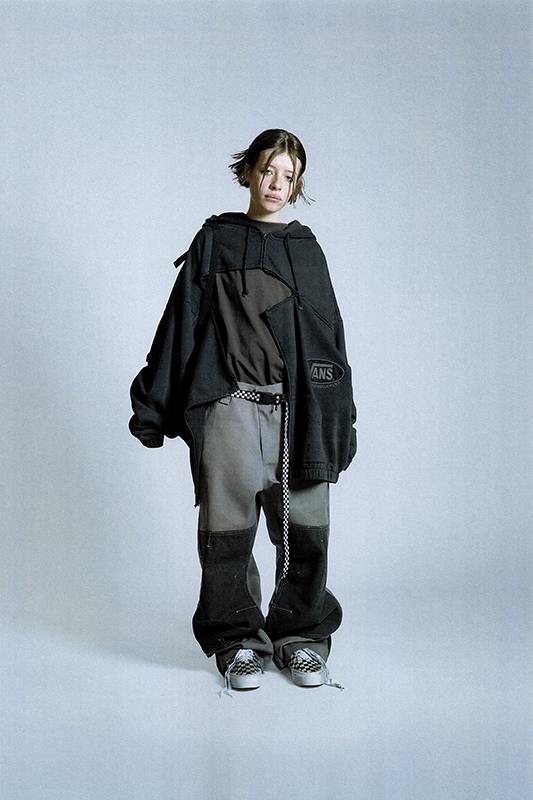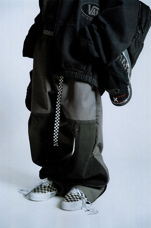 The two entities engage in a seamless dialogue with alternative youth culture through fleece jackets, oversized hoodies detailed with cross-zip lines, and loose cropped pants that hit at the calf — channeling classic skate silhouettes with a utilitarian edge.