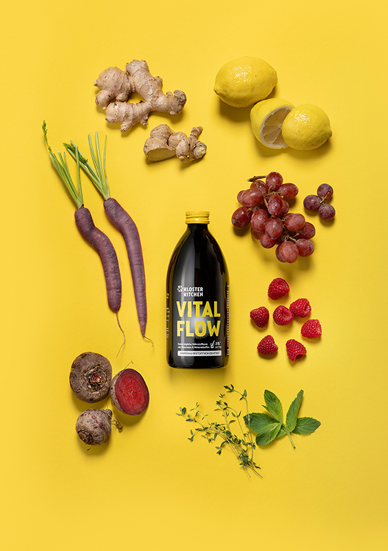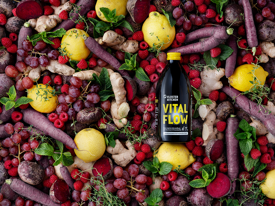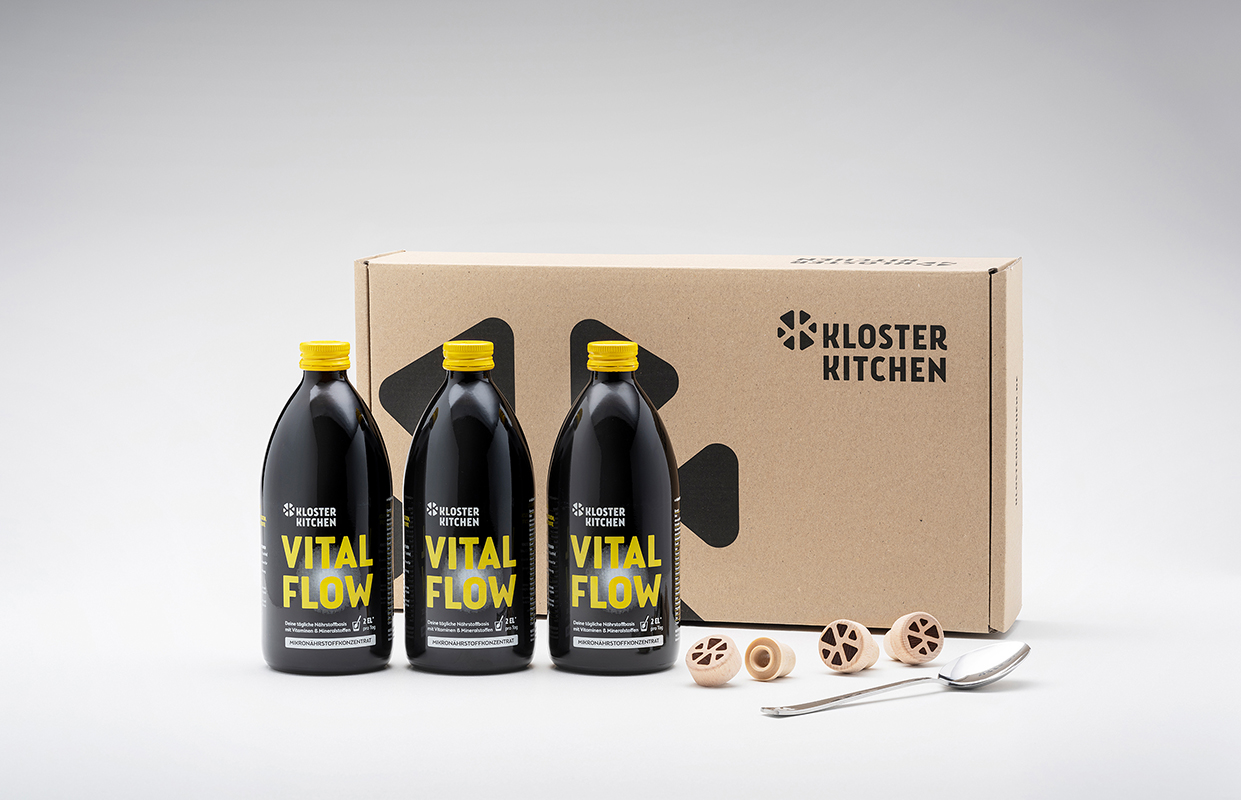 Pflanzlich gedacht. Wissenschaftlich gemacht. Die Lifestyle-Marke Kloster Kitchen, bekannt für ihre Ingwer Shots, Smoothies und Saftkuren mit Bio-Zutaten, bringt ein neuartiges Mikronährstoffkonzentrat in die moderne Gesundheitskultur. Mit VITAL FLOW entdeckt die Brand die große Welt der kleinen Mikronährstoffe – und bündelt darin ihre ganze Erfahrung mit funktionalen Rezepturen. Das neue Getränkekonzentrat kombiniert über 70 pflanzliche Zutaten plus essenziellen Vitaminen und Mineralstoffen. Es ist eine smarte Nährstoffbasis für den täglichen Support von Immunsystem1, Energie2 und kognitiver Leistungsfähigkeit3 – selbstverständlich frei von Konservierungs-, Farb-, Süß- und Aromastoffen. Einmal im Flow, läuft alles leichter. Für eine nachhaltige, tägliche Feel-Good-Routine – ideal für alle, die ihre ausgewogene Ernährung gezielt mit Mikronährstoffen ergänzen möchten.