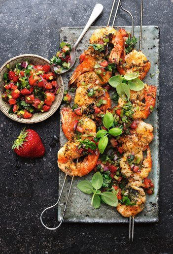 Saftige Garnelen mit einer frischen Erdbeer-Basilikum-