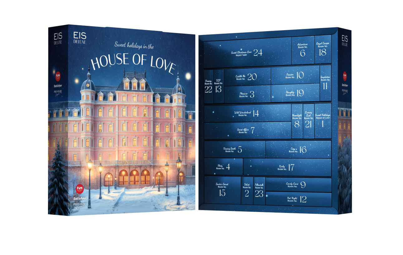 Diese Weihnachtssaison wird heißer denn je mit dem Launch der EIS Adventskalender 2025. Inspiriert vom Flair eines stilvollen Rückzugsorts laden die elegant gestalteten DELUXE- und PREMIUM-Editionen sowohl Singles als auch Paare dazu ein, sich 24 sinnlichen Überraschungen hinzugeben. Ob aufregende Lovetoys, stilvolle Accessoires, verwöhnende Produkte oder verspielte BDSM-Extras – hinter jedem Türchen verbirgt sich ein leidenschaftliches Erlebnis, das Lust und Spannung an kalten Winternächten garantiert. Das Beste daran? Dieses Hotel kennt kein Check-out: Der Inhalt sorgt auch nach der Weihnachtszeit für sinnliche Momente.