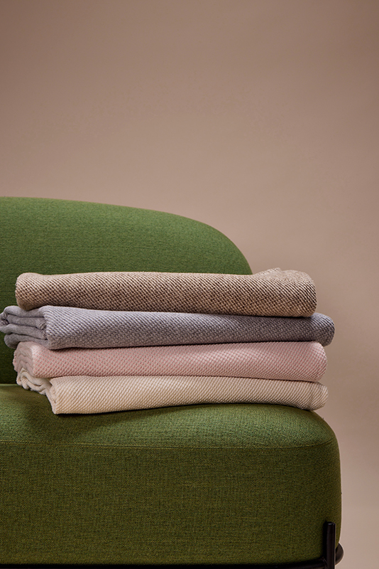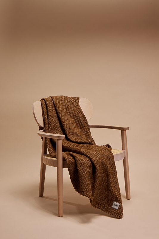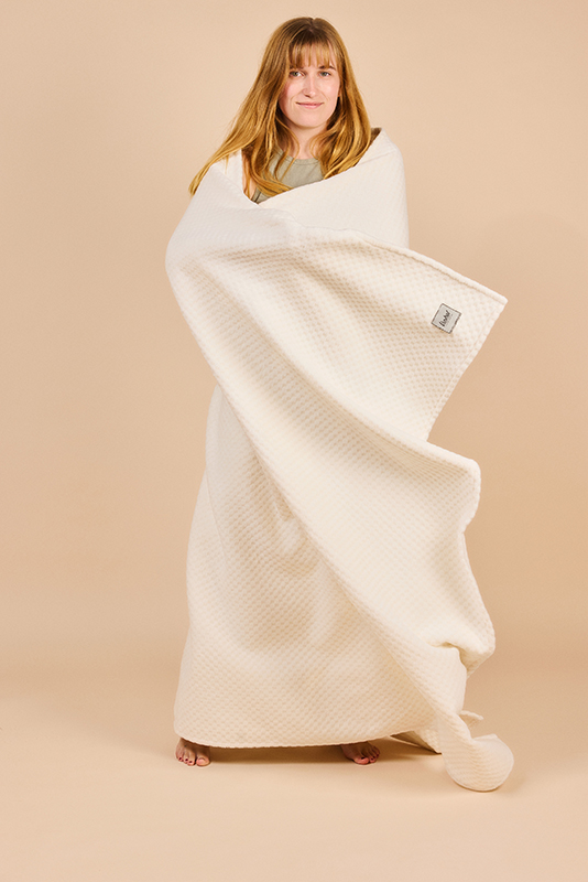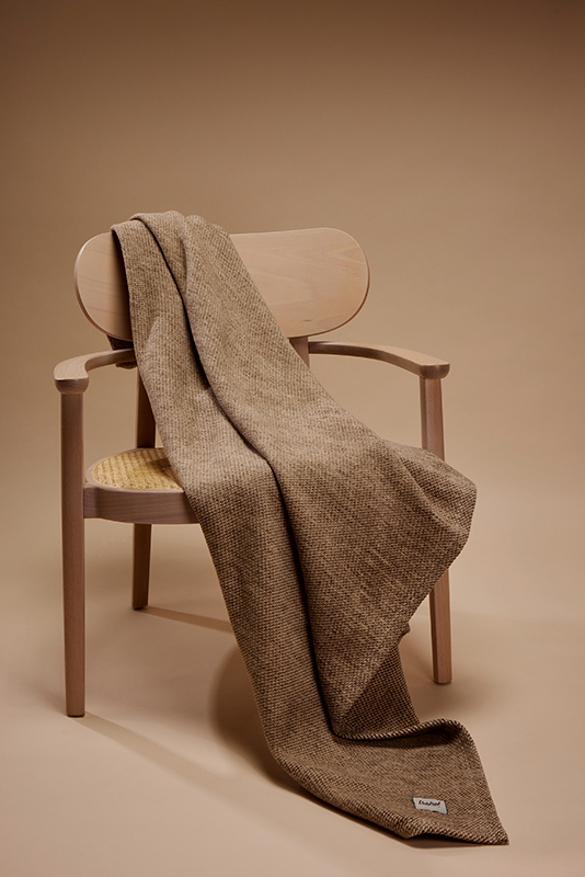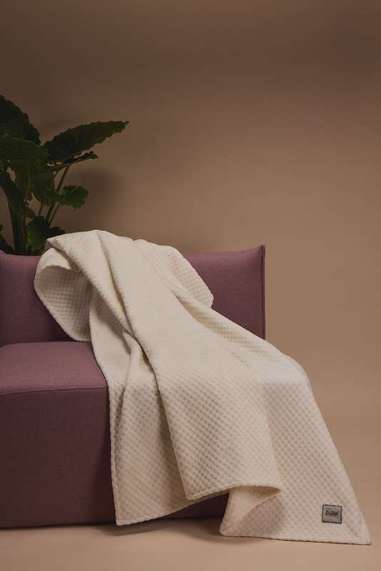 Ein weiterer Kushel Bestseller, die Decke Woven, kommt in einer neuen Farbe: softes, edles Hazel. Durch den Einsatz verschiedenfarbiger Garne entsteht bei Woven eine hochwertig melierte Webstruktur in Wabenform. Diese angerauten Waben erschaffen eine einzigartig weiche Oberflächenstruktur, die Haut und Sinne streichelt. Sie ist weich, vegan und wollig warm. Durch die erhöhte Grammatur ist Woven, ebenso wie Velvet, besonders wärmend an kalten Tagen.