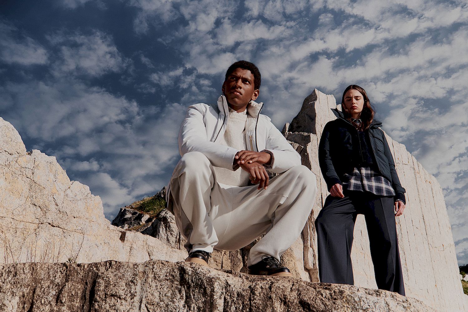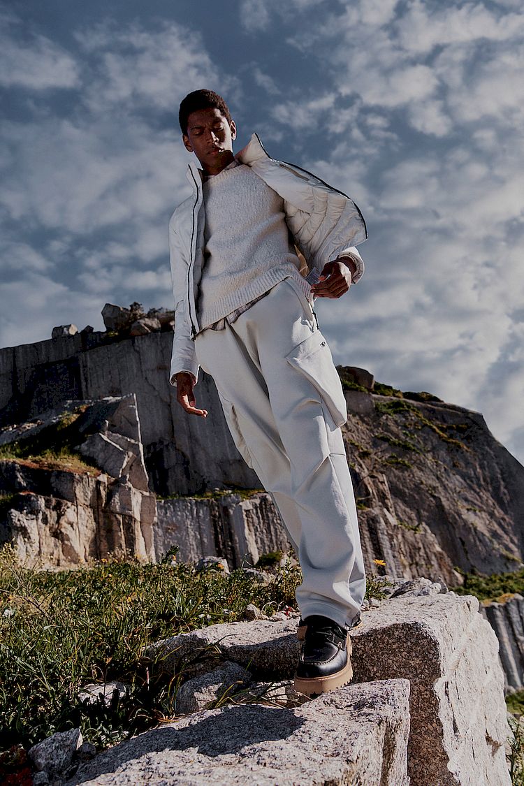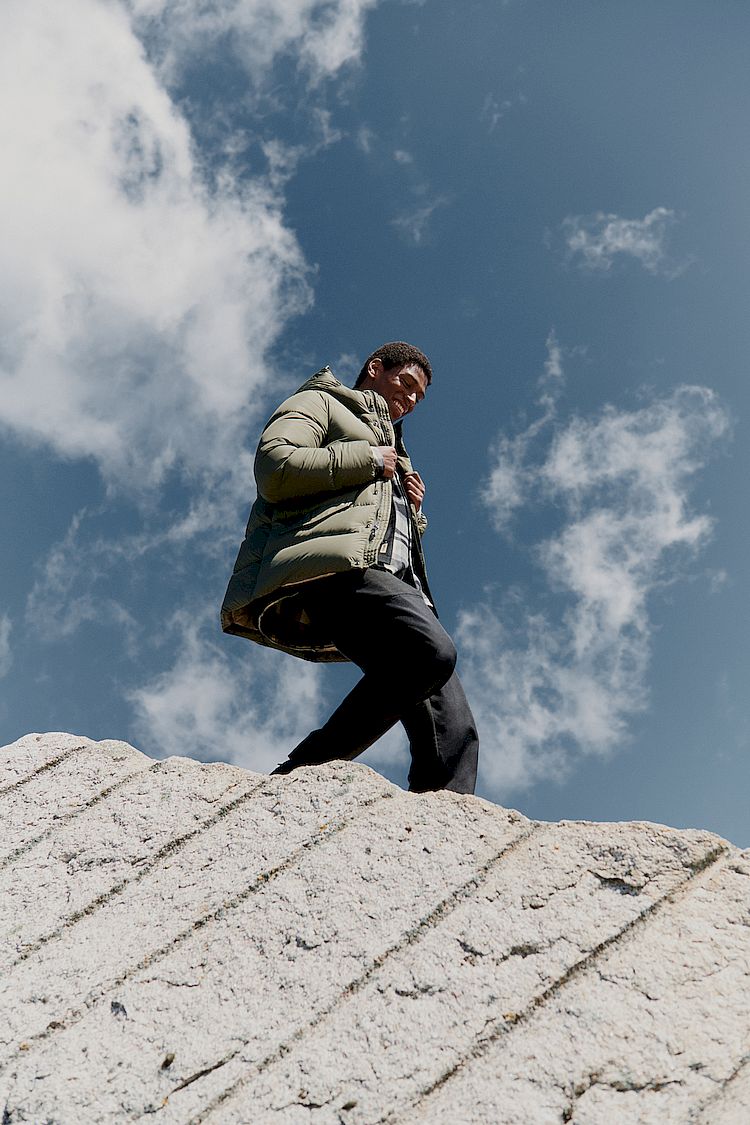 At the core of the collection is Cloud Fabric, an exclusive technical material that blends innovation with everyday performance. Compact and finely woven, it offers wind and rain protection while delivering an unexpectedly soft, cloud-like touch. The result is outerwear that feels light as air, yet built to withstand the elements.
