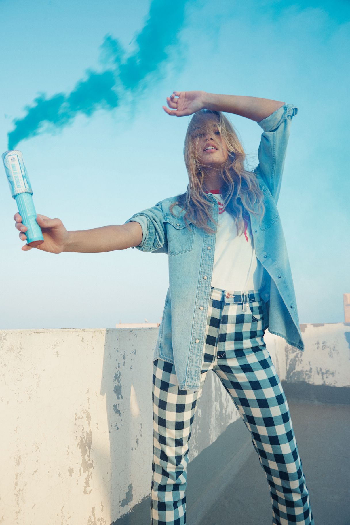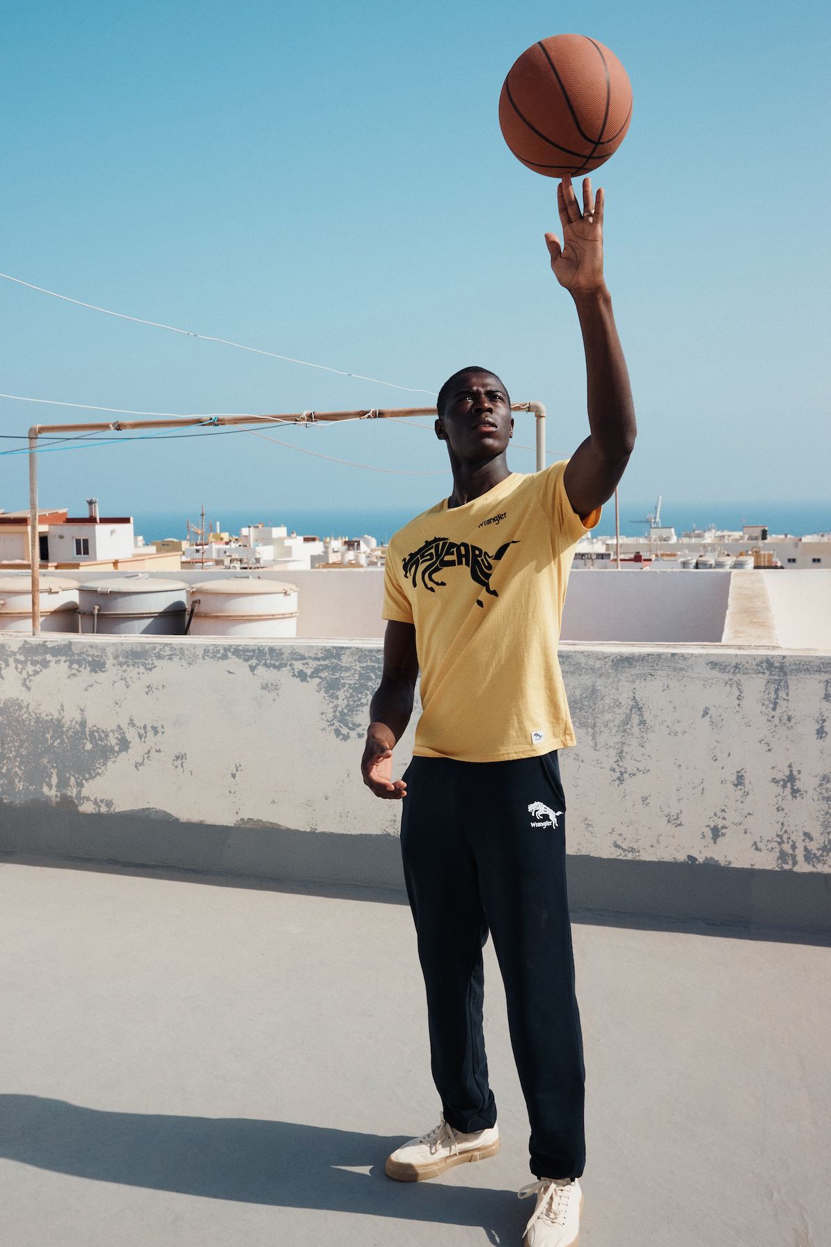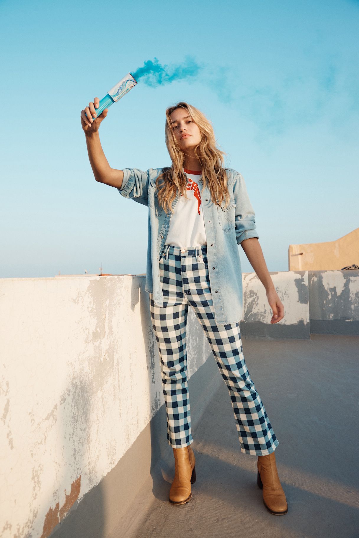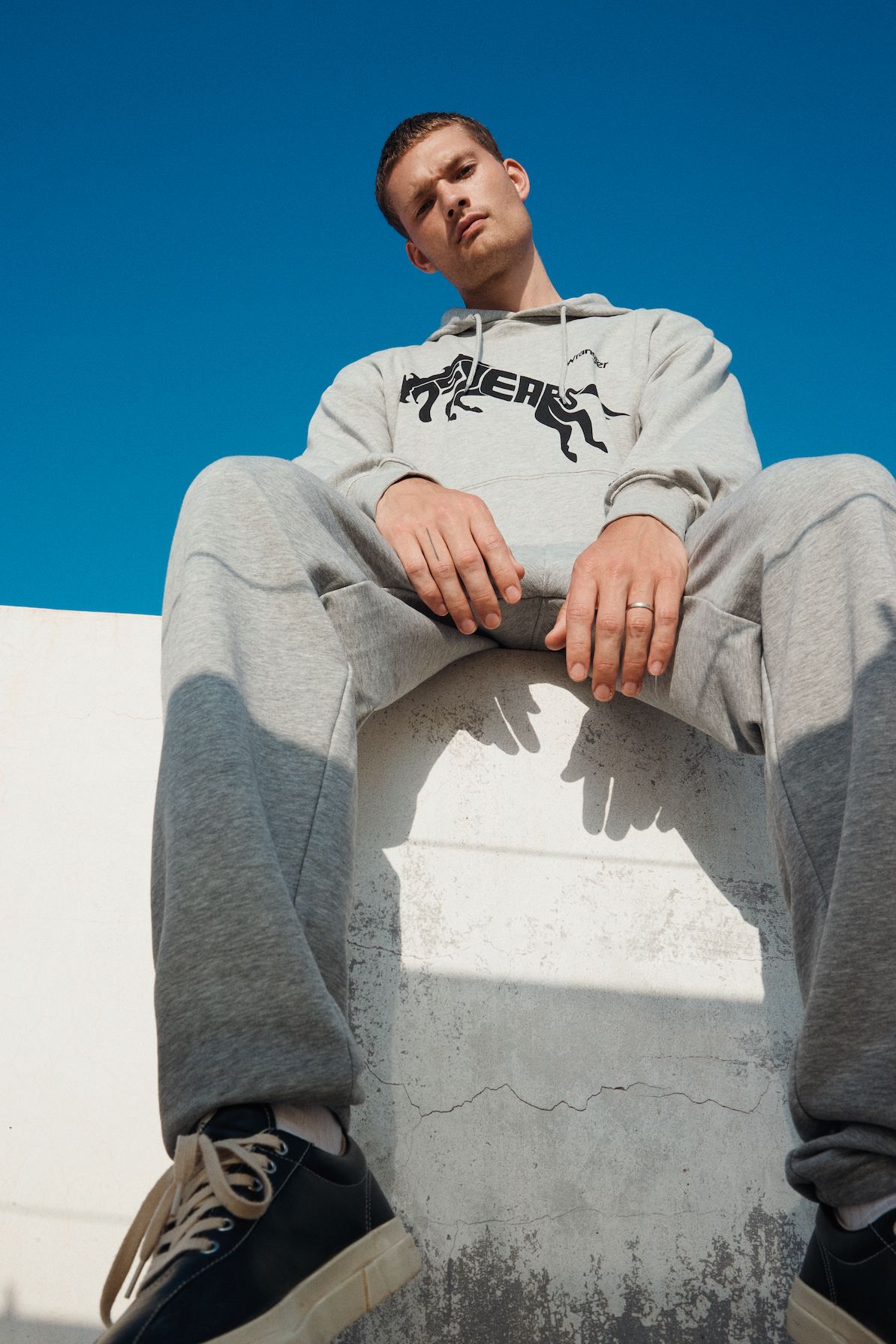 Das Motto ist selbstbewusst, frei und energetisch. T-Shirts, Hoodies und Joggers sind mit einem auffälligen Sonderlogo versehen, und die Farbpalette ist mit tiefen Rot-, Gelb- und Blautönen kräftig. Die archetypischen Hemden und Jacken in Denim von Wrangler überzeugen weiterhin als Klassiker. Verspieltheit und sonniger Optimismus finden sich in den bedruckten Denims für Damen wieder, mit Eiscreme-Streifen auf den Wild West-Jeans mit geradem Bein und auffälligen Karos auf der ausgestellten Silhouette der Wrock Fit. Eine Denim-Duvet-Jacke sorgt für einen saisonalen Übergangsstil, während Jeans-Shorts in A-Linie einen Hauch von Sommer versprühen. Bei den Herren sorgt die Anti-Fit-Jacke mit überschnittenen Schultern und verlängerten Ärmeln für einen modernen Oversized-Look.