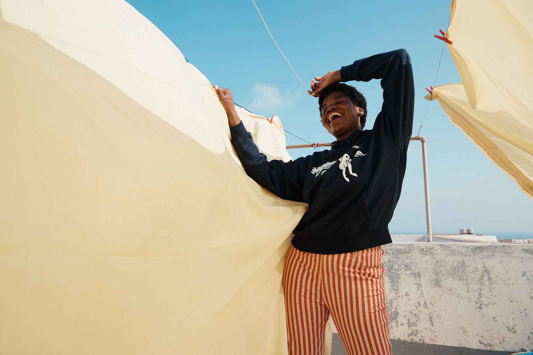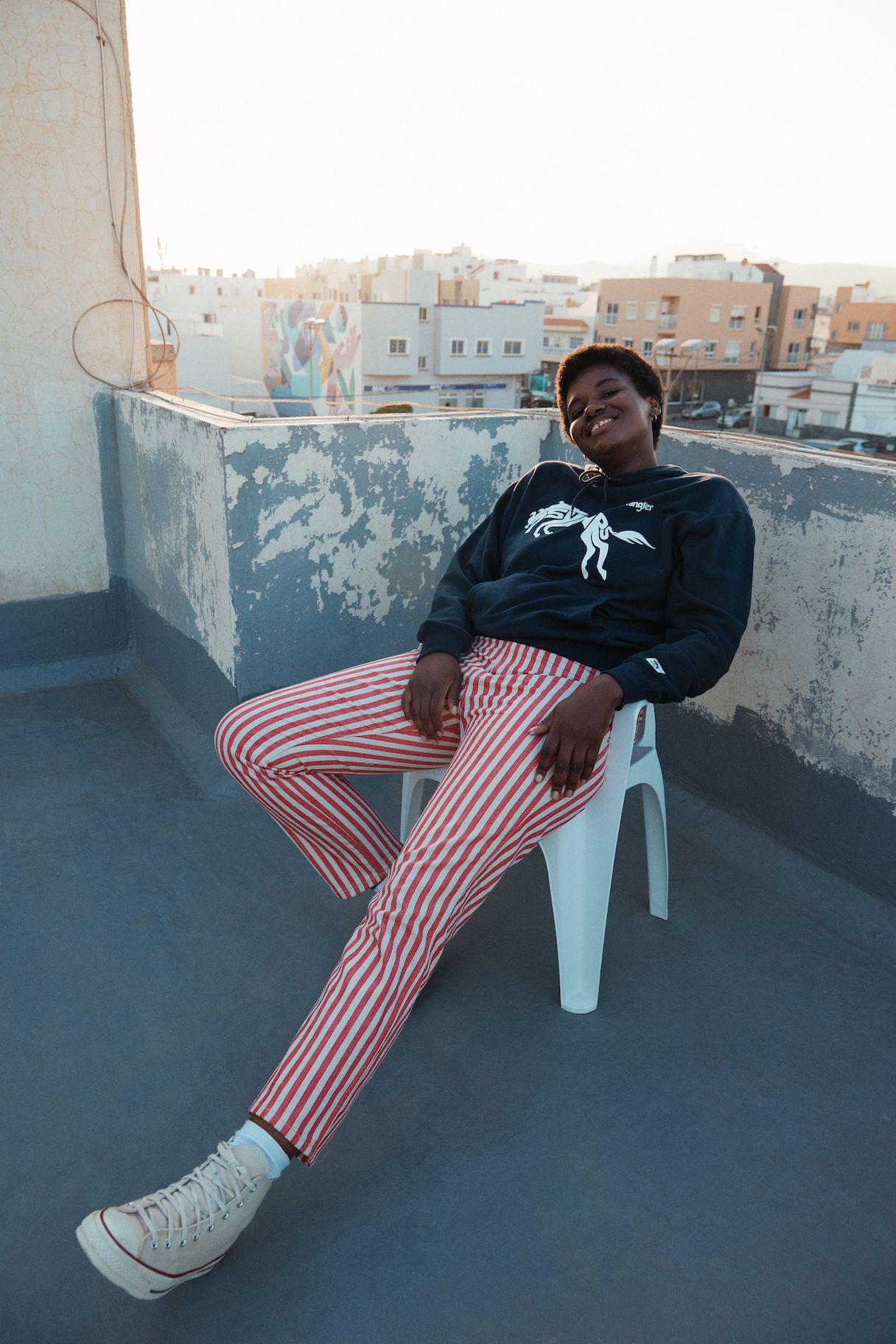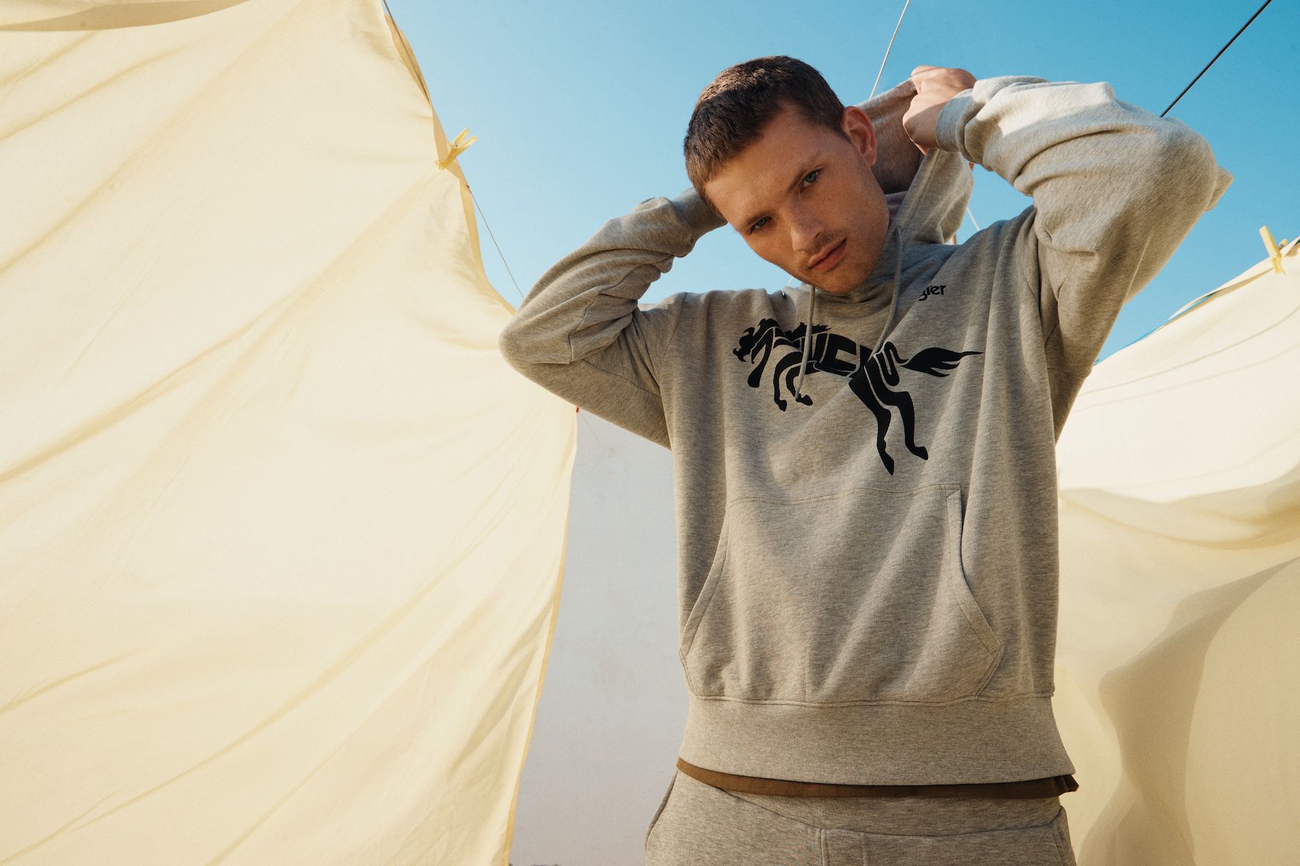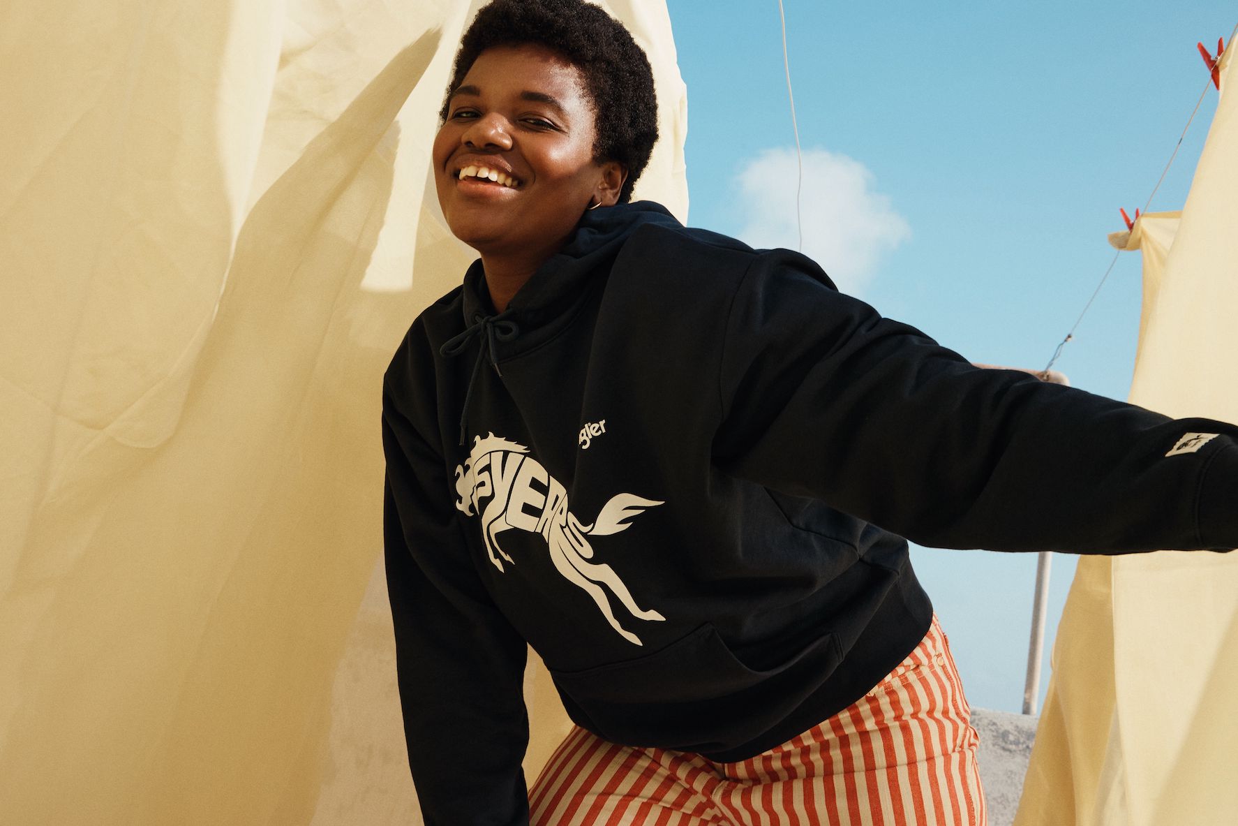 Das Motto ist selbstbewusst, frei und energetisch. T-Shirts, Hoodies und Joggers sind mit einem auffälligen Sonderlogo versehen, und die Farbpalette ist mit tiefen Rot-, Gelb- und Blautönen kräftig. Die archetypischen Hemden und Jacken in Denim von Wrangler überzeugen weiterhin als Klassiker. Verspieltheit und sonniger Optimismus finden sich in den bedruckten Denims für Damen wieder, mit Eiscreme-Streifen auf den Wild West-Jeans mit geradem Bein und auffälligen Karos auf der ausgestellten Silhouette der Wrock Fit. Eine Denim-Duvet-Jacke sorgt für einen saisonalen Übergangsstil, während Jeans-Shorts in A-Linie einen Hauch von Sommer versprühen. Bei den Herren sorgt die Anti-Fit-Jacke mit überschnittenen Schultern und verlängerten Ärmeln für einen modernen Oversized-Look.