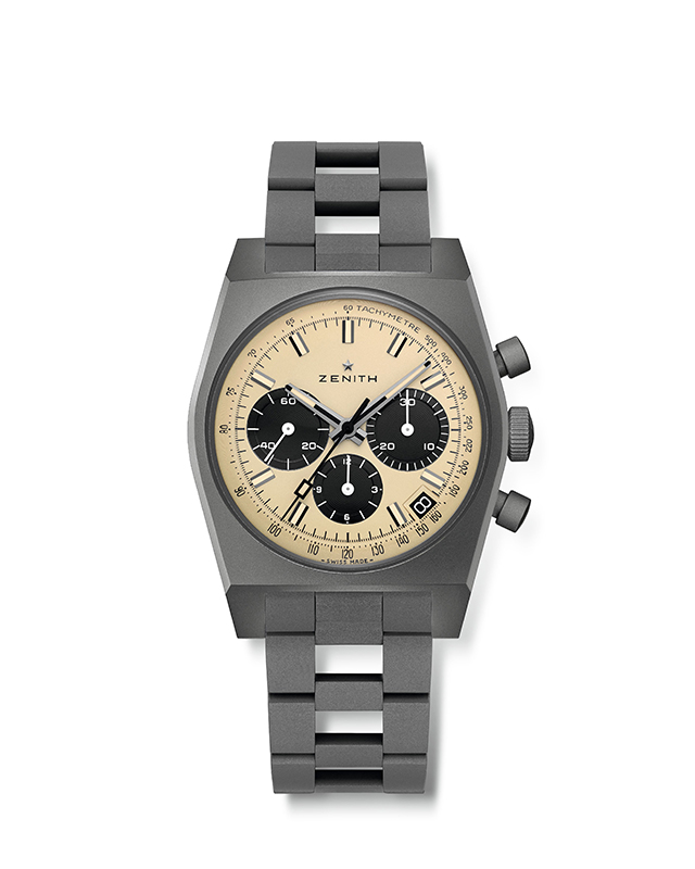 Decades later, ZENITH transformed this piece of fiction into reality with three limited editions paying tribute to Jigen’s anime wristwatch. The first, released in 2019, was a steel model limited to 50 pieces, featuring a black dial with gilt accents. A unique piece was also auctioned by Phillips, true to the anime depiction, with smaller markers and a subtly altered ZENITH logo, echoing the original animation. In 2020, the second edition followed: a 200-piece steel chronograph with a “panda” dial, pairing a white background with black counters. Finally, in 2021, ZENITH unveiled the third tribute, a 250-piece edition that fused both designs into a single asymmetrical dial, uniting the black and silver variations in one bold creation.